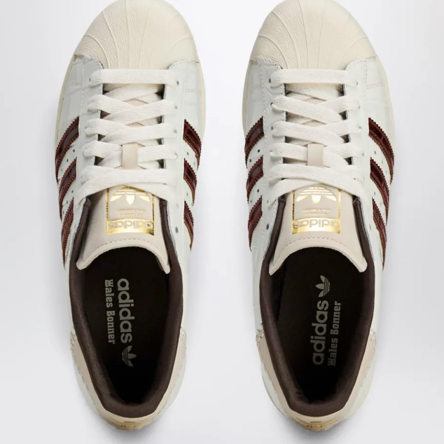 Adidas Superstar, opnieuw geïnterpreteerd in samenwerking met Wales Bonner, met een bovenwerk van krokodillenleer en verfijnde co-branding in folie voor een premium versie van de klassieke shell-toe sneaker. Belangrijkste kenmerken: Wonder wit | Fox bruin | Leer | rubberen buitenzool | Gegoten neuskap voor bescherming | Gewatteerde kraag | Satijnen voering | Platte geweven veters met metalen uiteinden | Bovenwerk van krokodillenleer | Rubberen shell-toe | Three Stripes met gekartelde randen | Co-branding in goudfolie | Geperforeerde zijpanelen | Blootgestikte topstitching | Samenstelling & verzorging: Bovenkant: Leer | Voering: Textiel | Buitenzool: Rubber