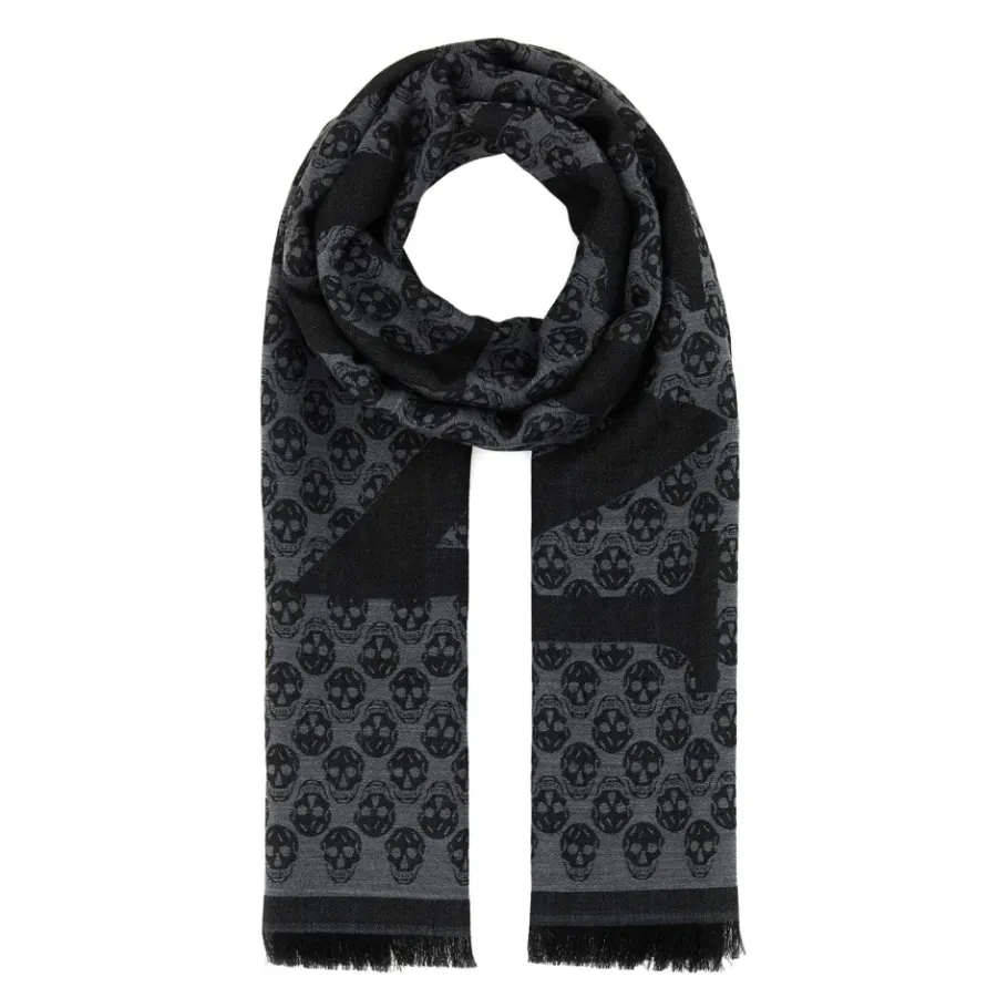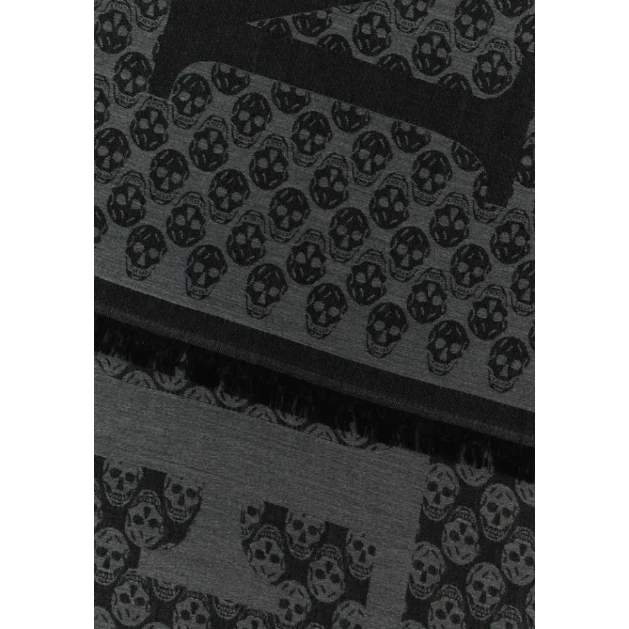 Blijf warm en stijlvol met deze Alexander McQueen geborduurde wollen foulard wintersjaal voor mannen. Met een lengte van 190 cm en een hoogte van 30 cm.