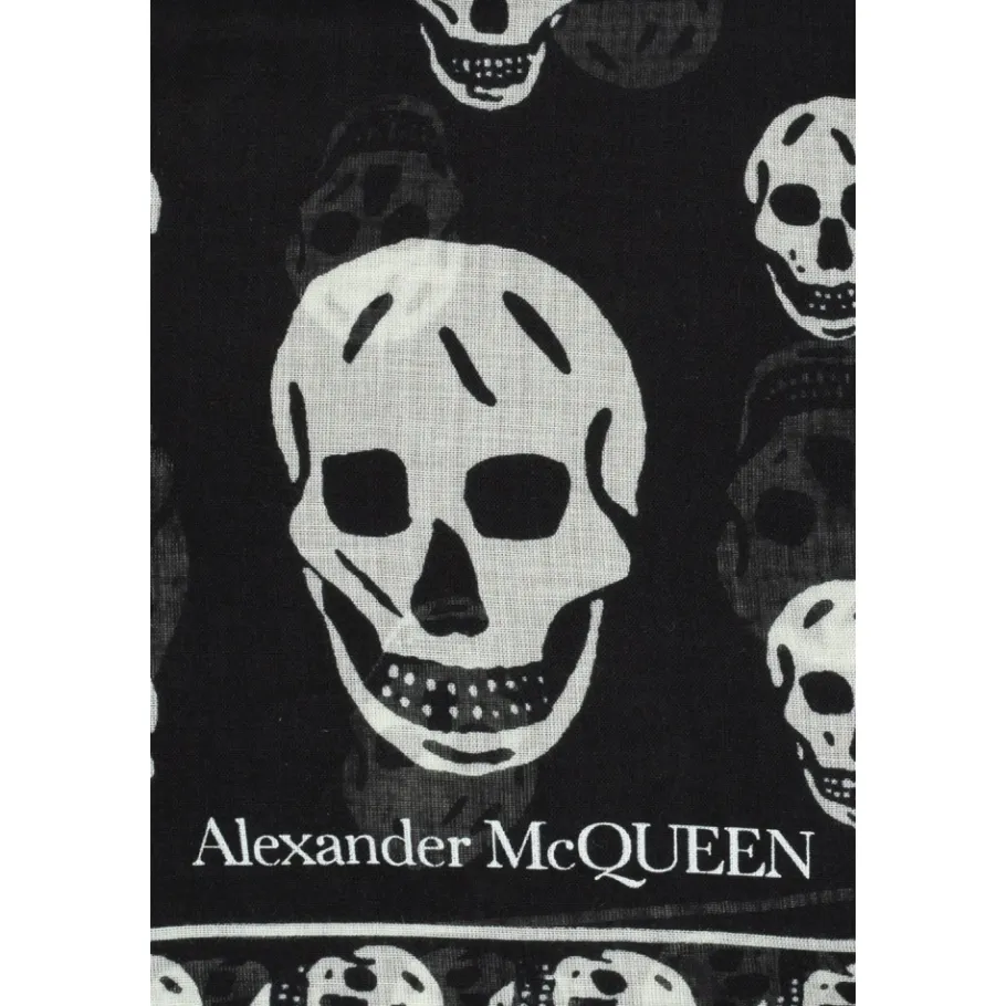 Zwarte doorschijnende sjaal van Alexander McQueen. Gemaakt van een zijde- en modalenmix, dit item toont rafelige uiteinden en het kenmerkende doodshoofdprint van het merk met een bijbehorend logo in het wit. Breedte: 104 cm Lengte: 120 cm