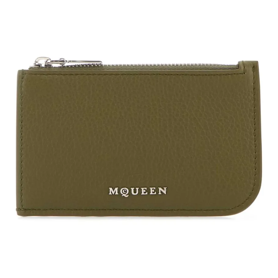 Alexander McQueen Stijlvolle Army Green Leren Kaarthouder-Heren Portefeuilles