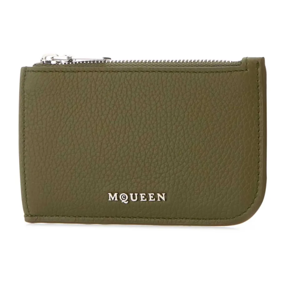 Upgrade je stijl met deze legergroene leren kaarthouder van Alexander McQueen. Met een breedte van 12 cm en een hoogte van 8 cm is het de perfecte accessoire voor de moderne man.