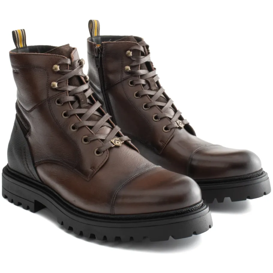 De ambitieuze HARDY veterlaarzen combineren een militair geïnspireerd silhouet met een stoere zool in commando-stijl, ontworpen voor robuust dagelijks gebruik en grip in de stad. Belangrijkste kenmerken: Bruin | Leer | Gripvaste buitenzool in commando-stijl | Ultralichte, geëxpandeerde thermoplastische zool | Vetersluiting | Leren bovenkant | Voering van leer en textiel | Militair geïnspireerd silhouet | Stoere zool in commando-stijl | Contrasterende veterogen | Rubberen hielstuk met textuur | Samenstelling & onderhoud: Bovenkant: Leer | Voering: Leer, Textiel | Buitenzool: Ultralichte, geëxpandeerde thermoplast