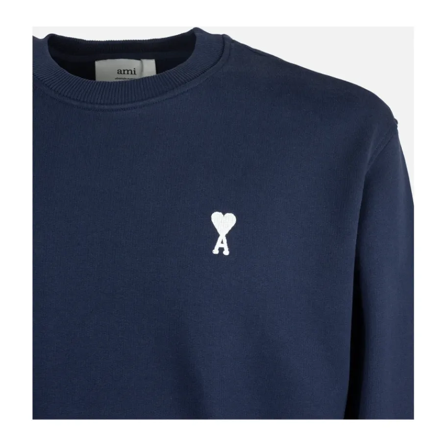 De Ami Paris De Coeur Sweatshirt combineert een klassieke, normale pasvorm met een kenmerkend geborduurd hartlogo voor dagelijks gebruik. Het is ontworpen voor comfortabele laagjes en een strakke, minimale styling. Belangrijkste kenmerken: Blauw | Marineblauw | Katoen | Zachte katoenfleece met lusjes aan de binnenkant | Makkelijk in laagjes te dragen | Behoudt zijn vorm met geribbelde boorden | Ronde hals | Lange mouwen | Geribbelde manchetten en zoom | Gebroken wit Ami de Coeur borstborduursel | Ton-sur-ton “AMI” borduursel onder de achterkant van de halslijn | Afmetingen & pasvorm: 69 cm ruglengte (maat M) | Normale pasvorm | Valt normaal qua maat; neem je normale maat | Samenstelling & onderhoud: 100% katoen | Machinewas koud op een fijnwasprogramma. Niet in de droogtrommel. Koel strijken. Niet chemisch reinigen.