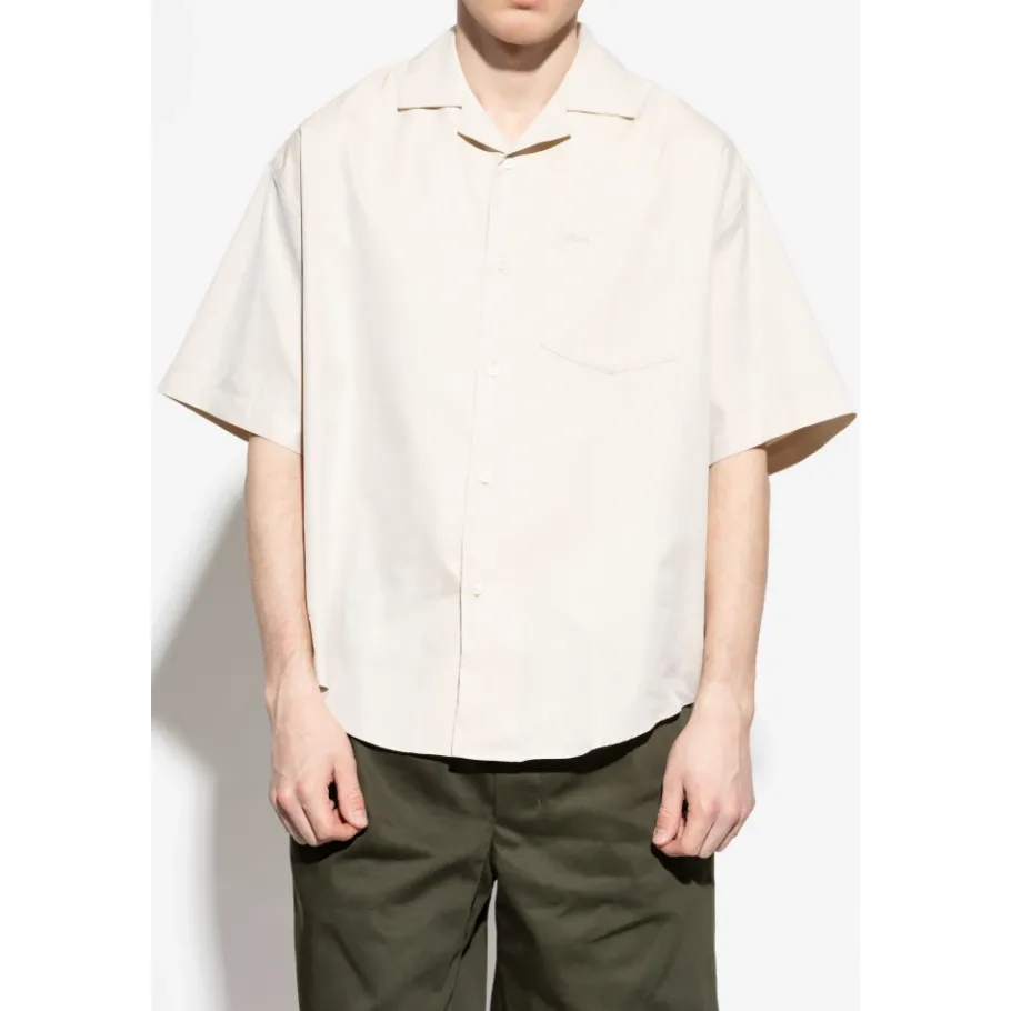 Ontdek het ELEGANTE SHIRT MET ZAK uit de exclusieve AMI ALEXANDRE MATTIUSSI-collectie. Dit beige shirt in een crèmekleurige tint, met korte mouwen en een klassieke kraag, belichaamt de essentie van Parijse nonchalance. Gemaakt van lichtgewicht, ademend katoen, zorgt het voor comfort op warmere dagen en voegt een vleugje chic en moderniteit toe. Een subtiel ontwerperlogo op de borst benadrukt zijn unieke karakter. De losse pasvorm van het shirt sluit perfect aan bij een casual stijl en maakt het een ideale keuze voor zowel informele als meer elegante gelegenheden. WAAROM ZOU U DIT PRODUCT KOPEN? * Uitzonderlijk ontwerp van de gerenommeerde ontwerper Alexandre Mattiussi. * Gemaakt van de hoogste kwaliteit katoen, wat zorgt voor ademend vermogen. * Een subtiel logo op de borst voegt een unieke charme toe. * De losse pasvorm combineert comfort en elegantie. Modelmaten Hoogte: 176 cm Buste: 85 cm Taille: 60 cm Heupen: 89 cm Model draagt maat: S
