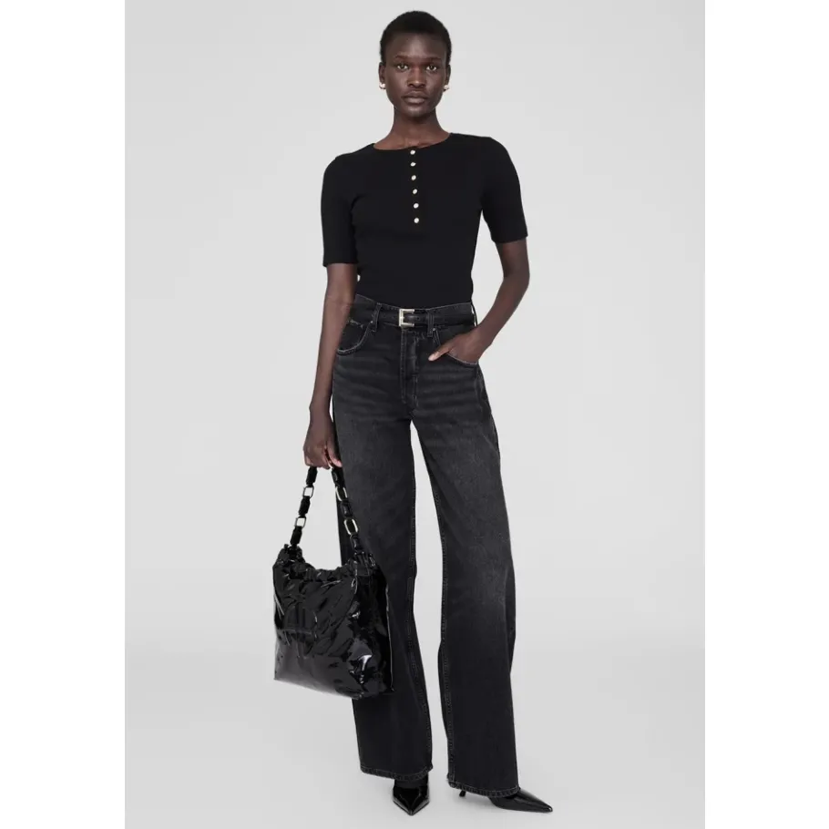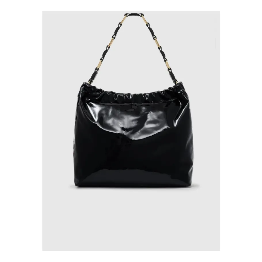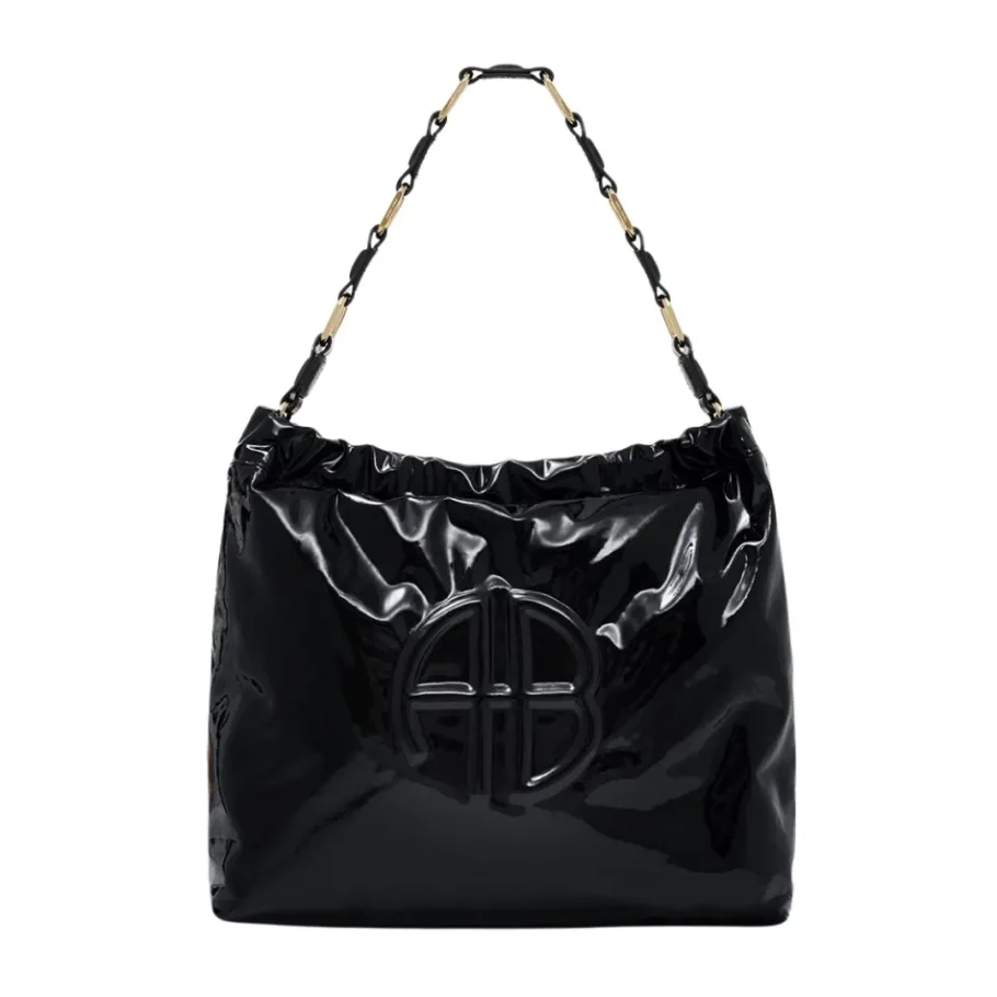 Geïnspireerd door de iconische Kate Tote tas, is de Kate schoudertas gemaakt van 100% nappaleer met een glanzende en zwarte afwerking. Deze iconische silhouet heeft een kettingriem met goudkleurige details. Het nostalgische ontwerp omvat een elastische opening en een bovenritssluiting die een volledig gevoerd katoenen keperinterieur onthult met een insteekzak en een ritszak. Het toont een reliëf ANINE BING monogram aan de voorkant. 100% koeienleer. Vlek reinigen. Gemaakt in Turkije.