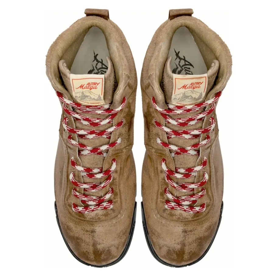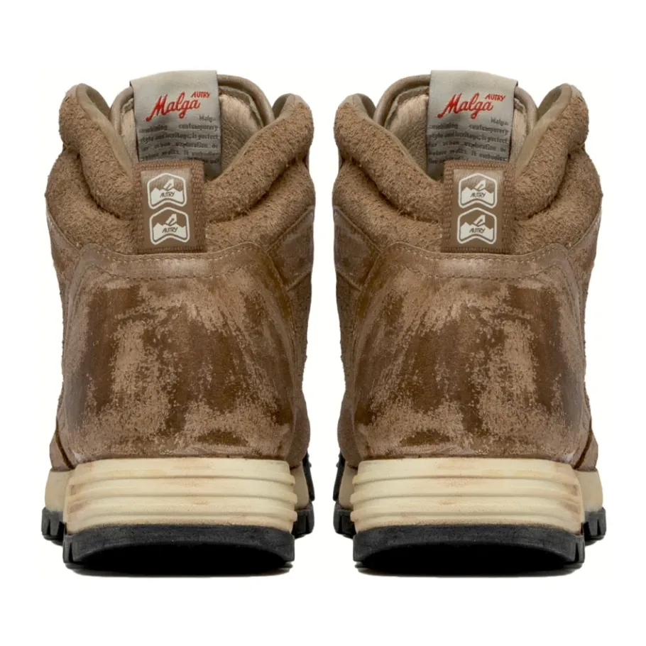 De Autry Stivaletto Malga is een alpine-geïnspireerde veterboot die vintage wandelstijl combineert met technische bescherming tegen het weer. De opvallendste eigenschap is een waterdicht, ademend Alpha Skin membraan dat de voeten droog houdt in winterse omstandigheden. Belangrijkste kenmerken: Bruin | Duifgrijs | Leer en suède | Waterdicht membraan (Alpha Skin) | Ademend | Winddicht | Gewatteerde kraag | Buisvormige tweekleurige veters | Verstevigde hiel | Verhoogde leren binnenzool | Silhouet van een veterwandelschoen | Gekartelde rubberen buitenzool | Logo details op de hiel, tong en zijkant | Afmetingen & pasvorm: Zoolhoogte: 2,5–3,5 cm | Verhoogde binnenzool: 2 cm | Normale pasvorm | Samenstelling & onderhoud: Bovenwerk: 83% suède, 15% Cordura nylon, 2% polyester | Voering: 40% leer, 60% waterdicht membraan | Zool: 60% Phylon, 40% rubber | Reinigen met een vochtige doek. Gebruik een suède borstel voor suède delen. Vermijd machinewas of volledig onderdompelen in water.