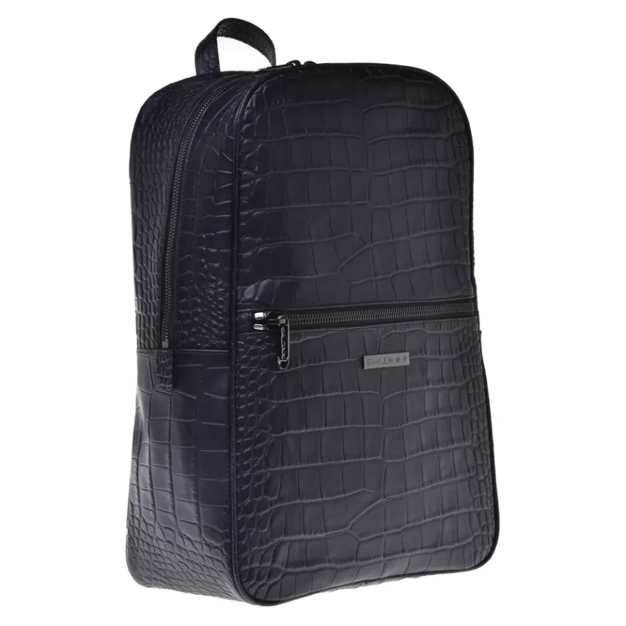 Sleek and compact this backpack is designed for the professional on the move. The squared leather silhouette is elevated by the crocodile motif, while inside, the laptop compartment and the zipped pockets ensure an impeccable organization of all your essentials. The iconic Baldinini logo applied on the front completes this model made in Italy.