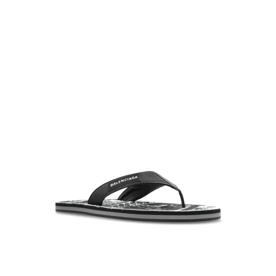 LOGO FLIP-FLOPS zijn een verfijnde interpretatie van zomerschoeisel voor mannen, die de essentie van de moderne ontwerpfilosofie van Balenciaga belichamen. De open constructie, kenmerkende Y-vormige banden en nauwkeurig vakmanschap met gebruik van hoogwaardig schuim en synthetische materialen zorgen voor uitzonderlijk comfort. De dubbellagige zool, versierd met een zwart-wit print die doet denken aan stedelijke graffiti, boeit met een subtiele zwart-wit accent aan de rand. De band heeft een gedurfd wit logo, een teken van prestige en exclusiviteit. Geïnspireerd door het meesterlijke vakmanschap van Cristóbal Balenciaga, combineert dit model succesvol traditie met de nieuwste trends en blijft het een onbetwist symbool van eigentijdse elegantie. WAAROM ZOU U DIT PRODUCT KOPEN? * Onderscheidend ontwerp ondertekend met het Balenciaga-logo * materialen en nauwgezet vakmanschap * Hoog draagcomfort tijdens zomerdagen * Unieke zool met een inspirerende grafische print * De perfecte combinatie van luxe en dagelijks comfort Zoolhoogte: 1,5 cm
