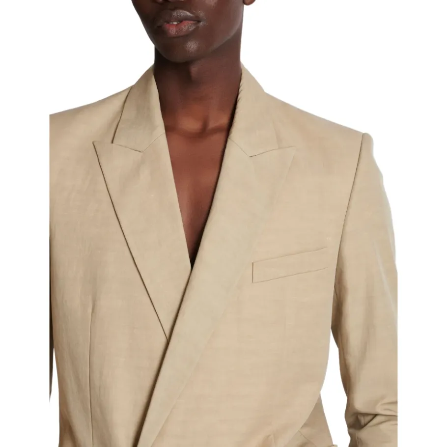 De Balmain 1-knoopsjas van soepel canvas combineert een gestructureerde pasvorm met een minimalistische sluiting voor een verfijnde, gelaagde look. Belangrijkste kenmerken: Beige | Viscose | Dubbele rij knopen met 2 gegraveerde hoornen knopen (1 binnenkant) | 2 opgestikte zakken aan de zijkant | 1 borstzak | 2 binnenzakken | Twill voering | Gestructureerde schouders | Italiaans getailleerde kraag | Lange mouwen | Rechte manchetten met 3 gegraveerde hoornen knopen | Toon-op-toon geborduurd Balmain Signature logo | Afmetingen en pasvorm: Model is 187 cm lang en draagt maat 48 | Rechte snit | Samenstelling en verzorging: 52% viscose | 48% katoen