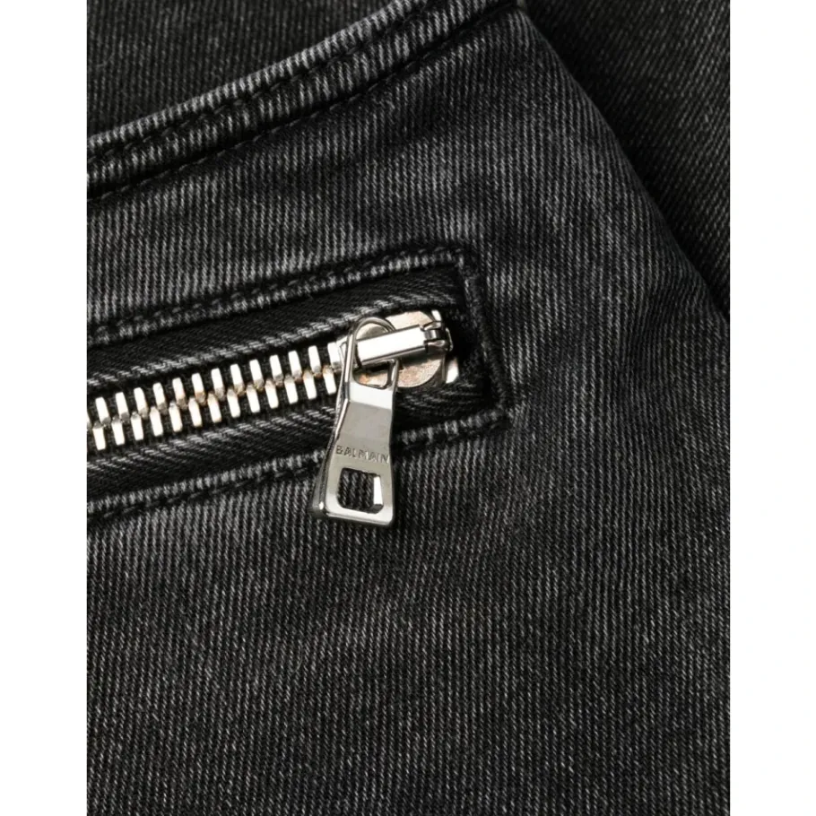 Upgrade je stijl met deze Balmain slim-fit jeans voor heren. De zwarte skinny jeans zijn gemaakt van 98% katoen en 2% elastaan, wat zowel comfort als stijl biedt. Productcode: WH1MG005107D.