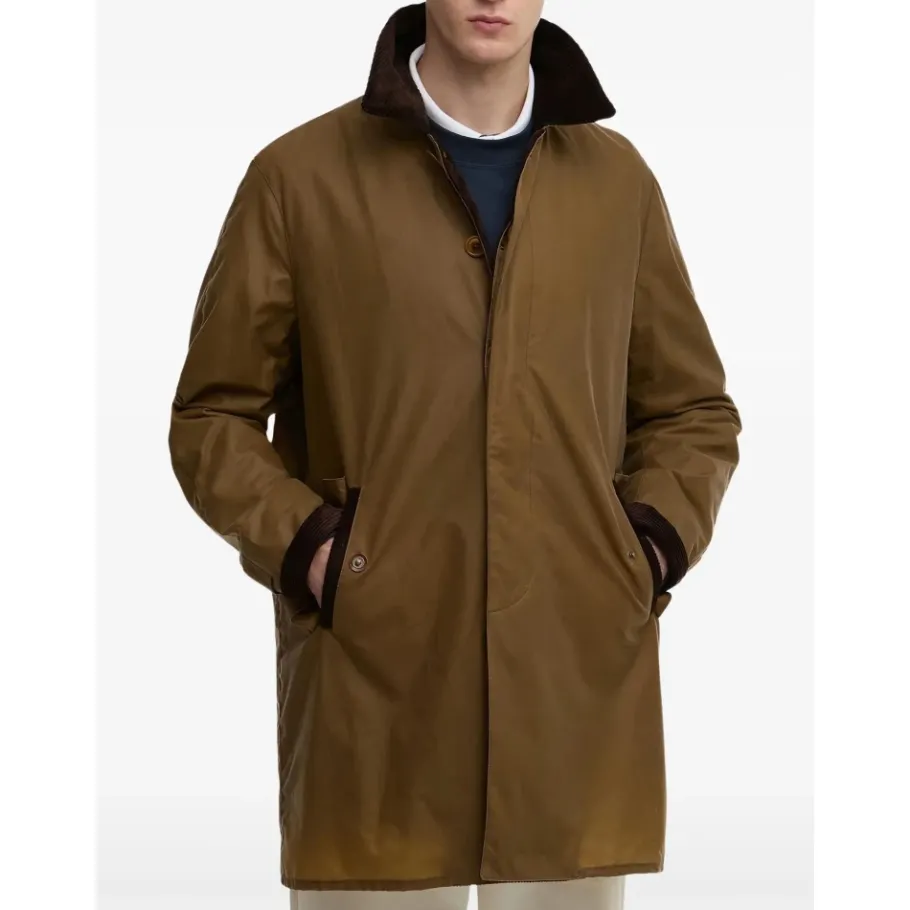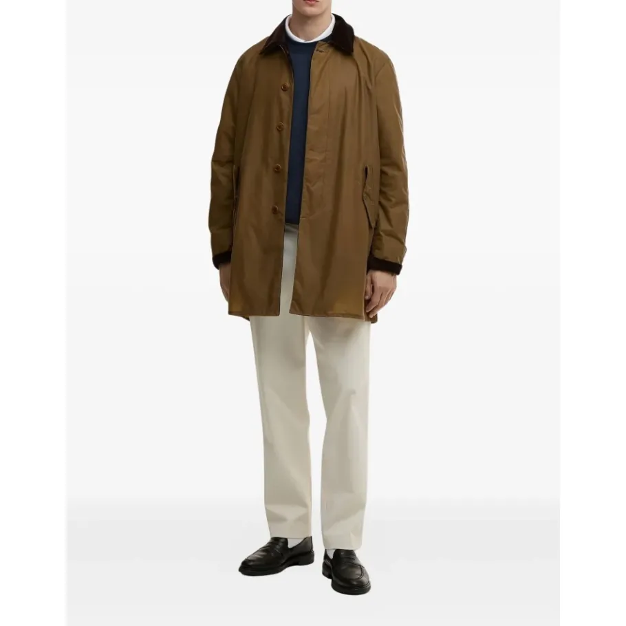 De Barbour x Baracuta Tyne Waxed Coat is een carcoat in samenwerking, ontworpen voor nat weer. Het combineert een gewaxte katoenen afwerking met traditionele details voor praktische bovenkleding voor alle seizoenen. Belangrijkste kenmerken: Tan | Gewaxt katoen | Gewaxte afwerking voor waterbestendigheid | Gemaakt voor nat weer | Ingezette mouwen aan de voorkant | Raglan achterkant | Umbrella rugpand voor bescherming tegen regen | 8-wale corduroy kraag | Carcoat silhouet geïnspireerd op de G10 lengte | Enkelrijige voorkant | Samenstelling & onderhoud: Buitenkant: 100% Gewaxt katoen | Voering: 100% Katoen | Kraag: 100% Katoen | Afwerking: 100% Rundleer | Niet wassen. Niet strijken. Alleen met een spons reinigen.