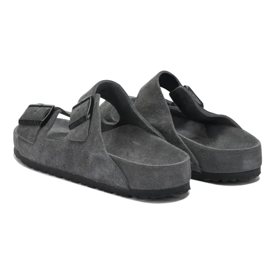 Birkenstock Arizona Suède Leer brengt het voorgevormde kurk-latex comfort van het merk samen met een zacht suède bovenwerk en verstelbare metalen gespen voor een stevige pasvorm. De productafbeelding is indicatief. Belangrijkste kenmerken: Charcoal | Suède | Voorgevormd kurk-latex voetbed | Schokabsorberende EVA-zool | Lichtgewicht demping | Verstelbare banden met metalen gespen | Sluiting met twee banden | Met suède gevoerd voetbed | Fluweelzacht suède bovenwerk | Tonale afwerking | Tijdloos silhouet met twee banden | Samenstelling & verzorging: Bovenwerk: Suède | Voetbed: Kurk-latex met suède voering | Buitenzool: EVA