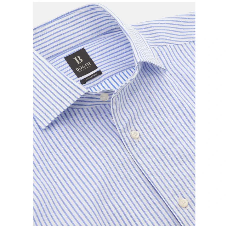 Boggi Milano Regular Fit Gestreept Katoenen Overhemd-Heren Overhemden