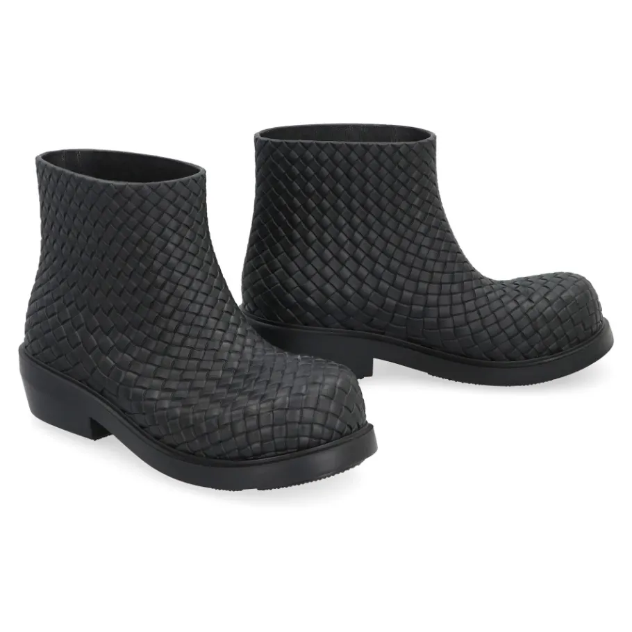 Bottega Veneta Brandweerman Enkellaarzen met Intrecciato Detail-Heren Laarzen
