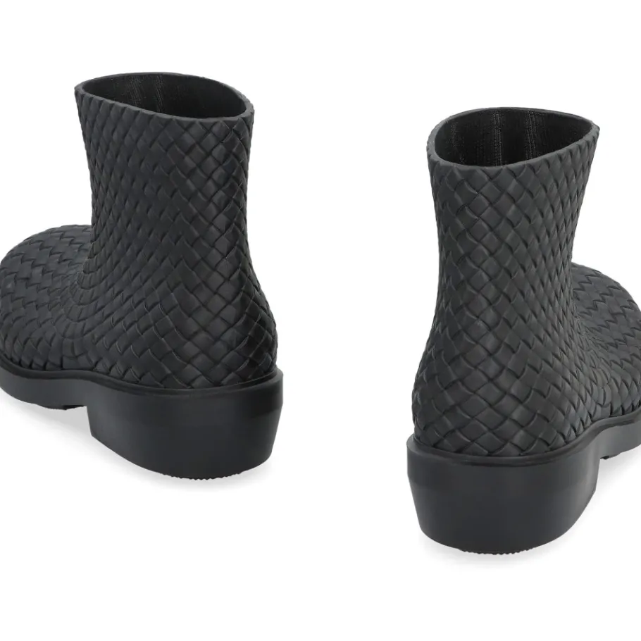 Bottega Veneta heren regenlaarzen met Intrecciato ontwerp, ronde neus en gemaakt van 100% rubber. Blijf stijlvol en droog in elk weer!