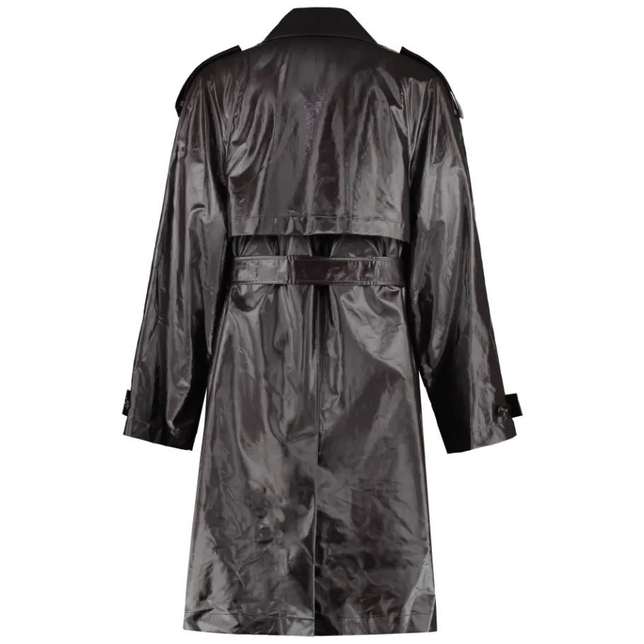 De Bottega Veneta Double-breasted Trenchcoat combineert een klassiek double-breasted silhouet met lederen details en een uitneembare voering voor veelzijdige, gelaagde draagbaarheid. Belangrijkste kenmerken: Bruin | Gecoate stof | Uitneembare voering | Afneembare riem | Vier voorzakken | Double-breasted voorkant | Epauletten op de schouders | Lederen details | Samenstelling & verzorging: 89% katoen, 11% polyamide | 100% lam | Handwas.