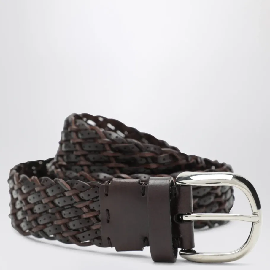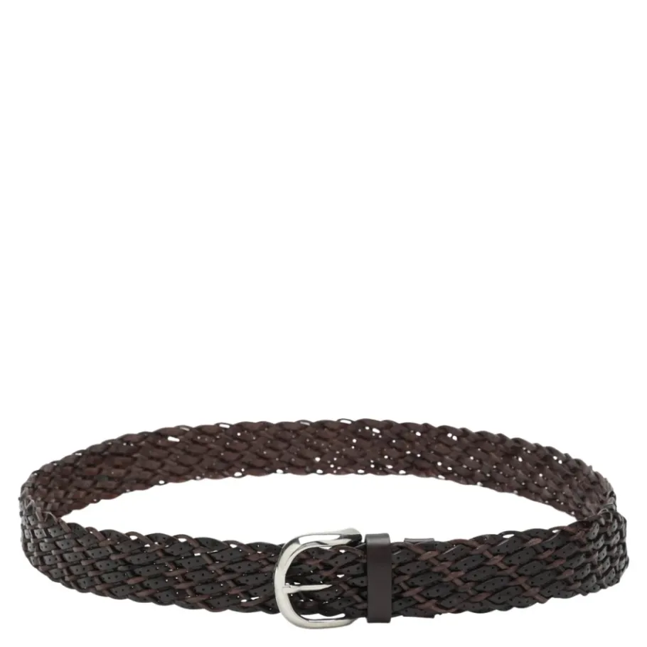 De Brunello Cucinelli gevlochten kalfsleren riem combineert verfijnd gevlochten leer met een gedetailleerde gesp voor veelzijdige alledaagse en geklede looks. Het accessoire combineert ambachtelijke textuur met een veilige gespsluiting voor een stijlvolle look. Belangrijkste kenmerken: Bruin | Donkerbruin | Kalfsleer | Nikkelvrije hardware | Verstelbare pasvorm | Gespsluiting | Leren lus keeper | Gevlochten textuur | Gegraveerde gesp en punt | Geweven patroon | Afmetingen & pasvorm: Verstelbare pasvorm | Samenstelling & onderhoud: 100% kalfsleer