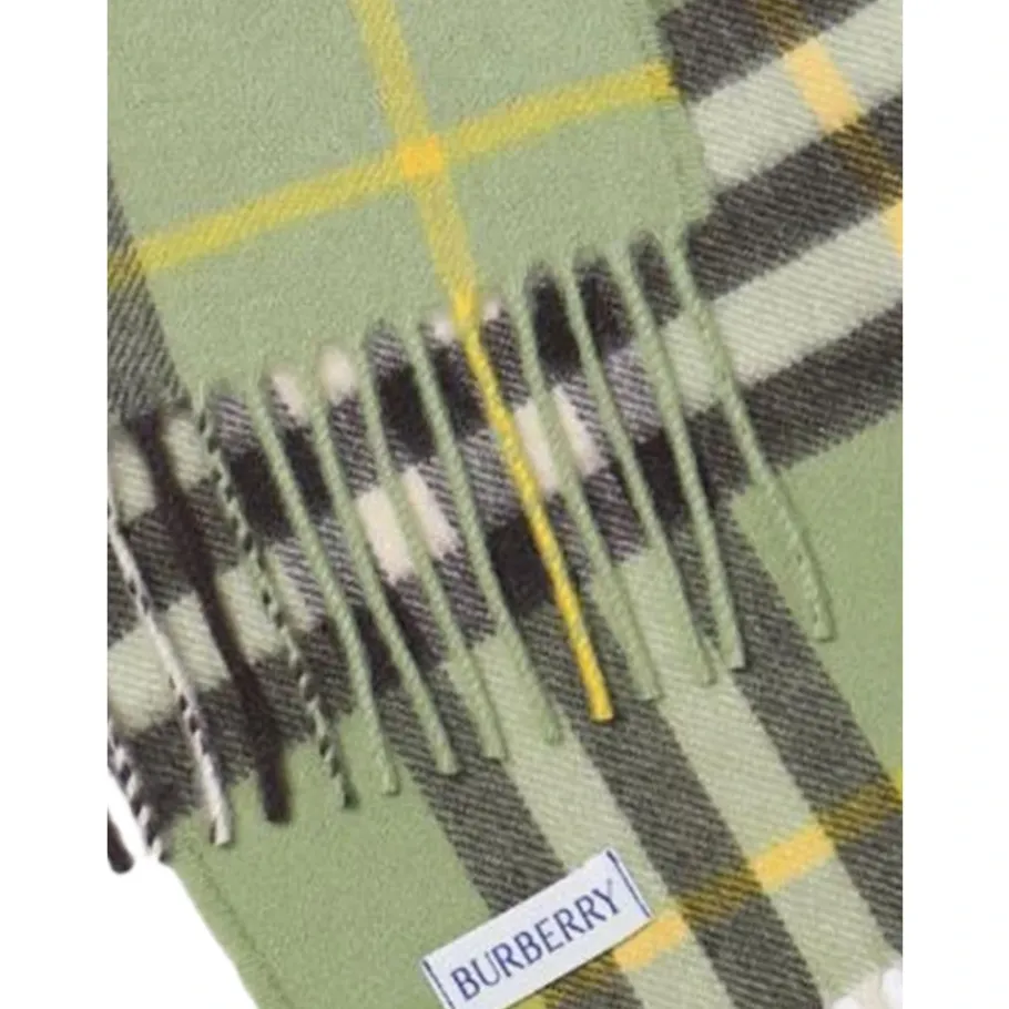 Upgrade de winterstijl van je kleintje met deze Burberry Kids wollen sjaal met groen geruit patroon, logo aan de voorkant, rechthoekig ontwerp, franje randen en een omslagstijl. Gemaakt van 100% kasjmier.