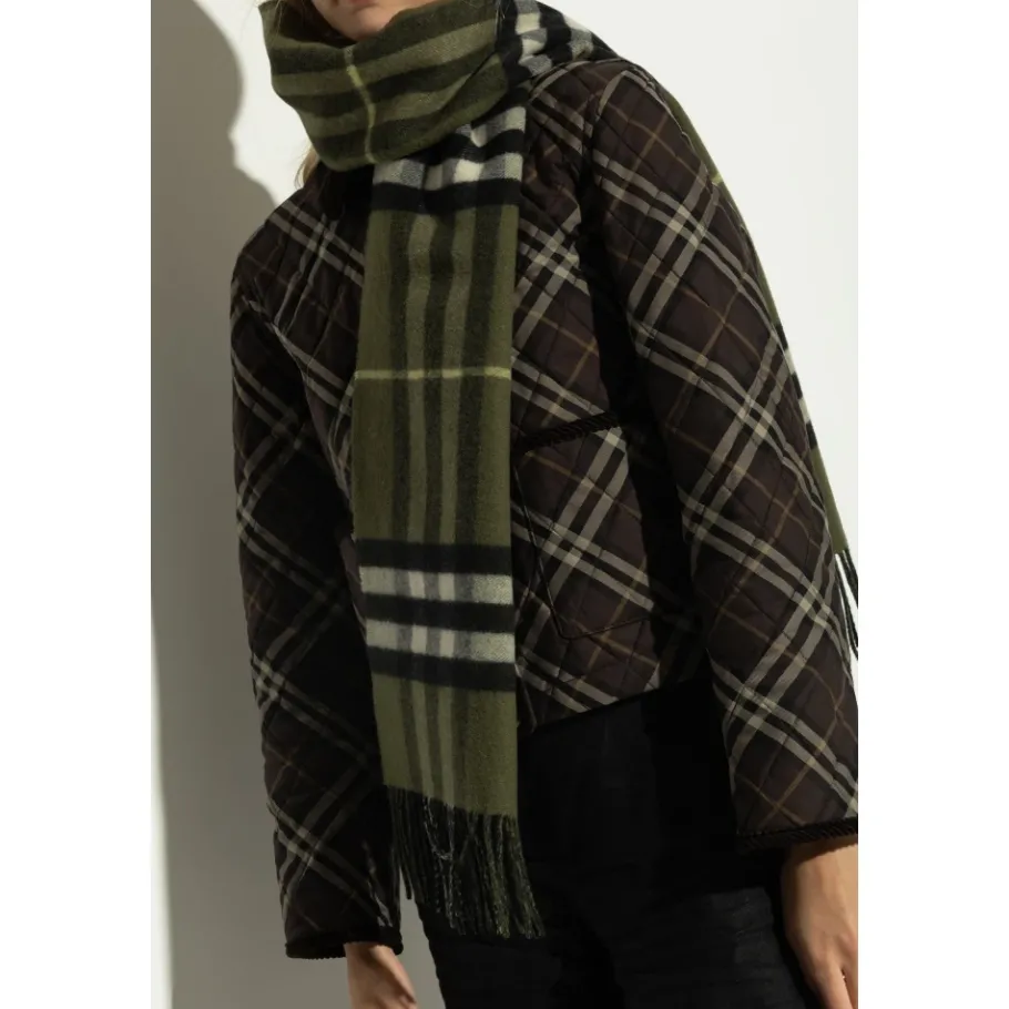 KASJMERE SJAAL MET FRANJES van Burberry is de quintessens van verfijnde elegantie, gecreëerd voor kenners van luxe accessoires. De aantrekkingskracht van deze klassieke, rechthoekige sjaal wordt benadrukt door de diepgroene kleur en het intrigerend geweven, herhalend “B” monogram in een medaillonomtrek – een discreet maar onderscheidend eerbetoon aan het erfgoed van het gerenommeerde Engelse merk. De sjaal is vervaardigd van premium, uitzonderlijk zacht en nobel kasjmier, wat zorgt voor fluweelzachte delicatesse en een plezierige draagervaring. De afwerking van dichte, rechte franjes met subtiele, contrasterende accenten verrijkt het ontwerp met unieke finesse. Dit tijdloze accessoire is perfect voor zowel vrouwen- als mannenstijlen, en dient als een subtiele maar expressieve stijlverklaring. WAAROM DIT PRODUCT KOPEN? * Gemaakt van de fijnste kasjmier voor ongeëvenaard comfort * Uniek monogram dat het prestige van het Burberry-merk benadrukt * Afgewerkt met elegante franjes en intrigerende kleurcontrasten * Tijdloos karakter – perfect voor vrouwen en mannen * Een uitstekende cadeaukeuze voor degenen die verfijnde mode waarderen Breedte: 30cm Lengte: 168cm Model’s Metingen Hoogte: 176cm Buste: 85cm Taille: 60cm Heupen: 89cm Model’s Metingen Hoogte: 193cm Borst: 95cm Taille: 82cm Heupen: 93cm