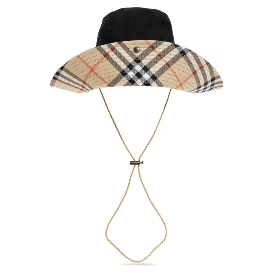 KATOENEN HOED MET STRIKKEN van Burberry belichaamt verfijning en tijdloze elegantie. Gemaakt van de beste kwaliteit katoen, biedt het ongeëvenaard comfort en ademend vermogen, zelfs op de warmste dagen. De brede rand biedt niet alleen effectieve zonbescherming, maar trekt ook de aandacht met zijn verfijnde tweekleurige ontwerp – een strakke zwarte kroon contrasteert met een rand in beige-en-zwart ruitmotief, geïnspireerd op de iconische patronen van het Engelse modehuis. Het subtiele geborduurde logo in de vorm van een ruiter op het zwarte gedeelte van de hoed trekt de aandacht en dient als een bewijs van Burberry’s toewijding aan traditie en luxe. Onberispelijk vakmanschap en minutieus verfijnde details geven deze hoed een werkelijk uniek en uitzonderlijk karakter. WAAROM ZOU U DIT PRODUCT KIEZEN? * Onderscheidende esthetiek geïnspireerd door het erfgoed van Burberry * Natuurlijk katoen zorgt voor comfort en ademend vermogen * Zonbescherming dankzij de brede rand * Unieke ontwerpdetails voor een verfijnde stijl
