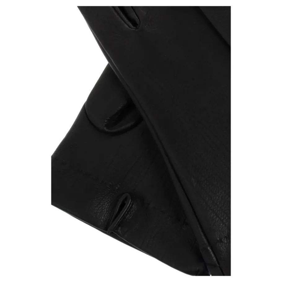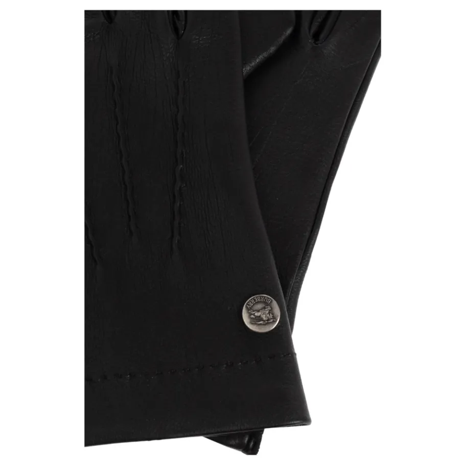 BURBERRY LEREN HANDSCHOENEN belichamen de essentie van tijdloze elegantie en verfijnde smaak. De zwarte, subtiel glanzende tint – bereikt door zorgvuldig geselecteerd natuurlijk leer – wordt geaccentueerd door een klassieke snit en decoratieve stiksels die discreet langs de middelvingers lopen. Onberispelijk vakmanschap blijkt uit de foutloze naden rond de vingers en manchetten. Een subtiel geplaatste metalen applicatie gegraveerd met het logo van de ontwerper voegt een verfijnde toets van exclusiviteit toe. De binnenste laag, verrijkt met kasjmier en zijde, zorgt voor een ongeëvenaard gevoel van comfort. Het minimalistische karakter maakt dit accessoire universeel, terwijl de rijke erfenis van het Burberry-merk – een legende van Engelse elegantie – de prestige van het product bevestigt. WAAROM DIT PRODUCT KOPEN? * Uitzonderlijk comfort dankzij een delicate kasjmier- en zijdevoering * Perfect handgemaakt vakmanschap en de duurzaamheid van natuurlijk kalfsleder * Exclusief ontwerp met het kenmerkende Burberry-logo * Tijdloze, veelzijdige stijl voor de veeleisende individu * De prestige van een product met een rijke merkgeschiedenis
