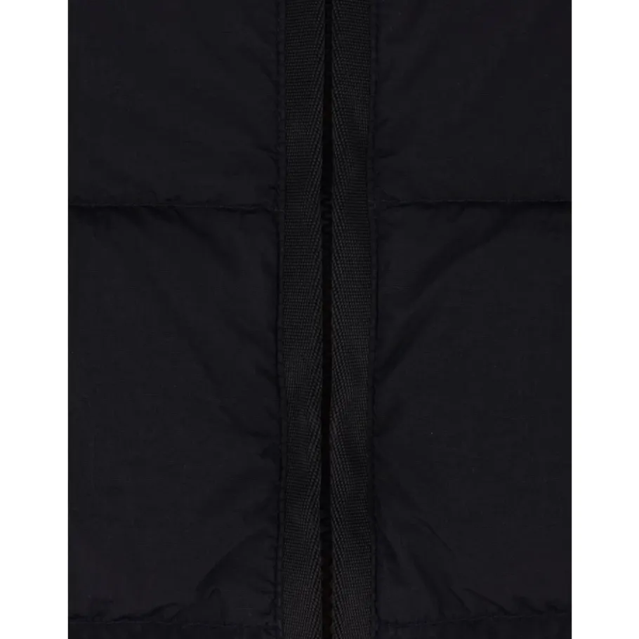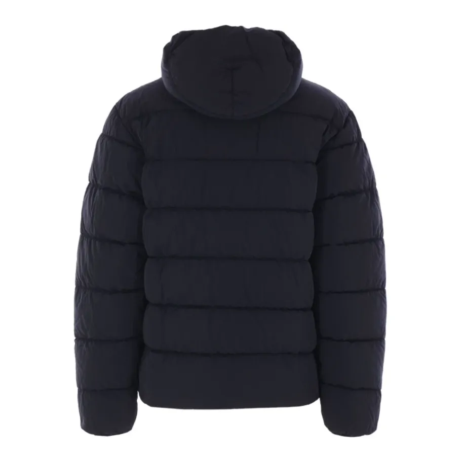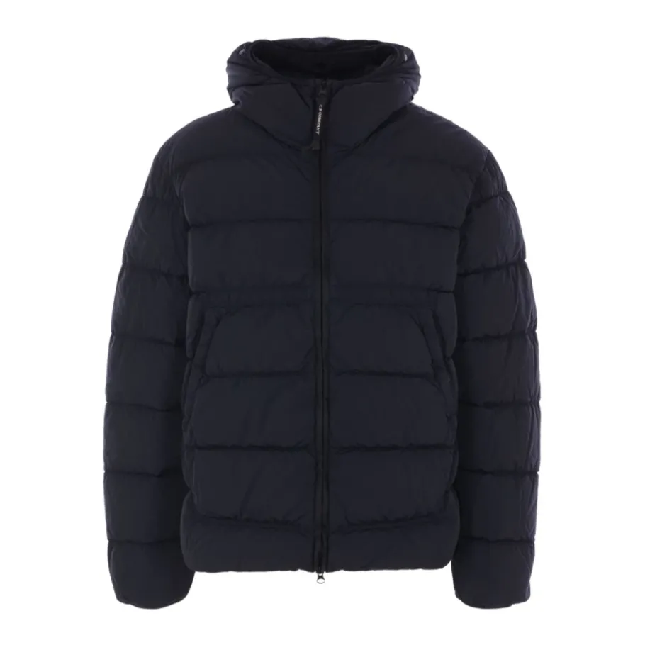 Blijf warm en stijlvol deze winter met deze donkerblauwe gewatteerde C.P. Company jas voor heren. Met een ritssluiting aan de voorkant, verborgen capuchon en lange mouwen.