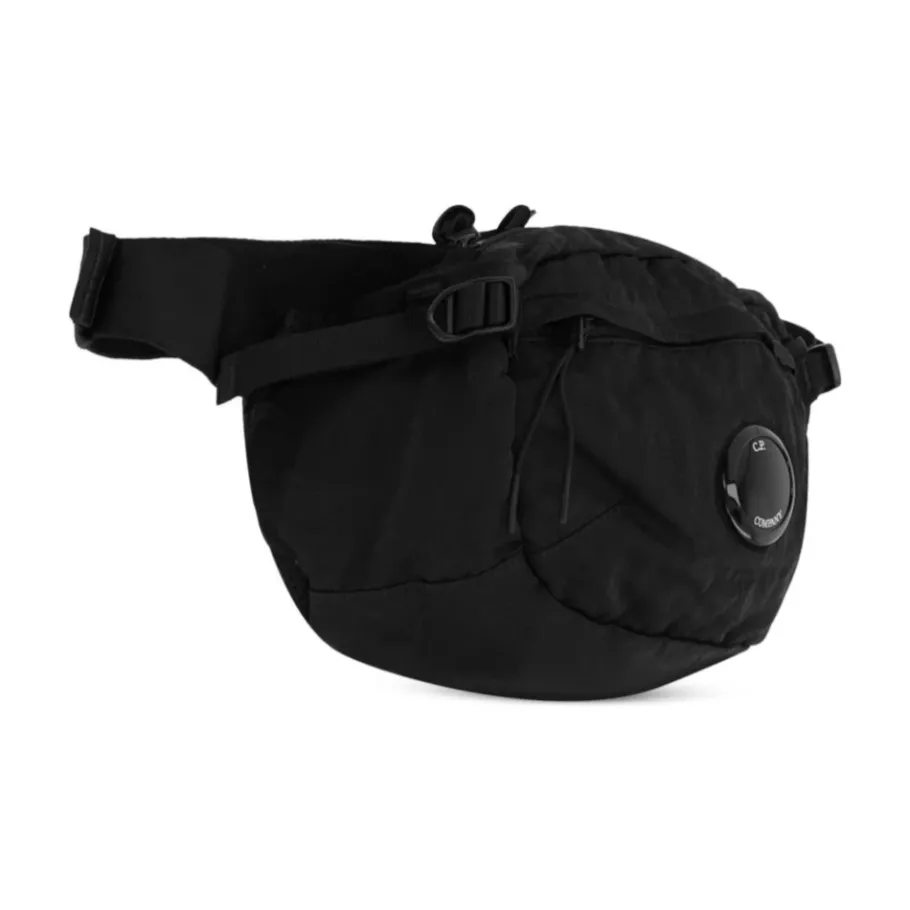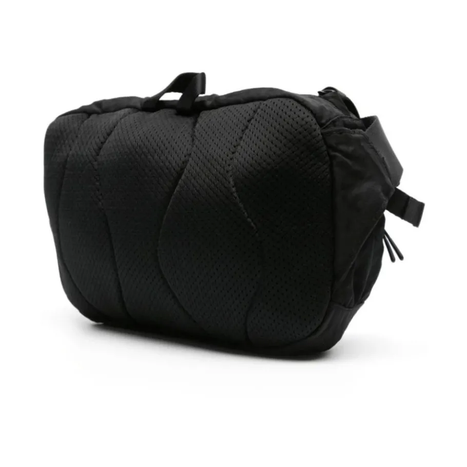 Upgrade je stijl met deze zwarte gewatteerde heuptas van C.P. Company. Voorzien van een verstelbare band, gespsluiting, lensdetail en ritssluiting. DIEPTE: 6,0 cm, HOOGTE: 14,0 cm, BREEDTE: 24,0 cm. C.P. Company adviseert om alle afneembare accessoires te verwijderen voor het wassen.