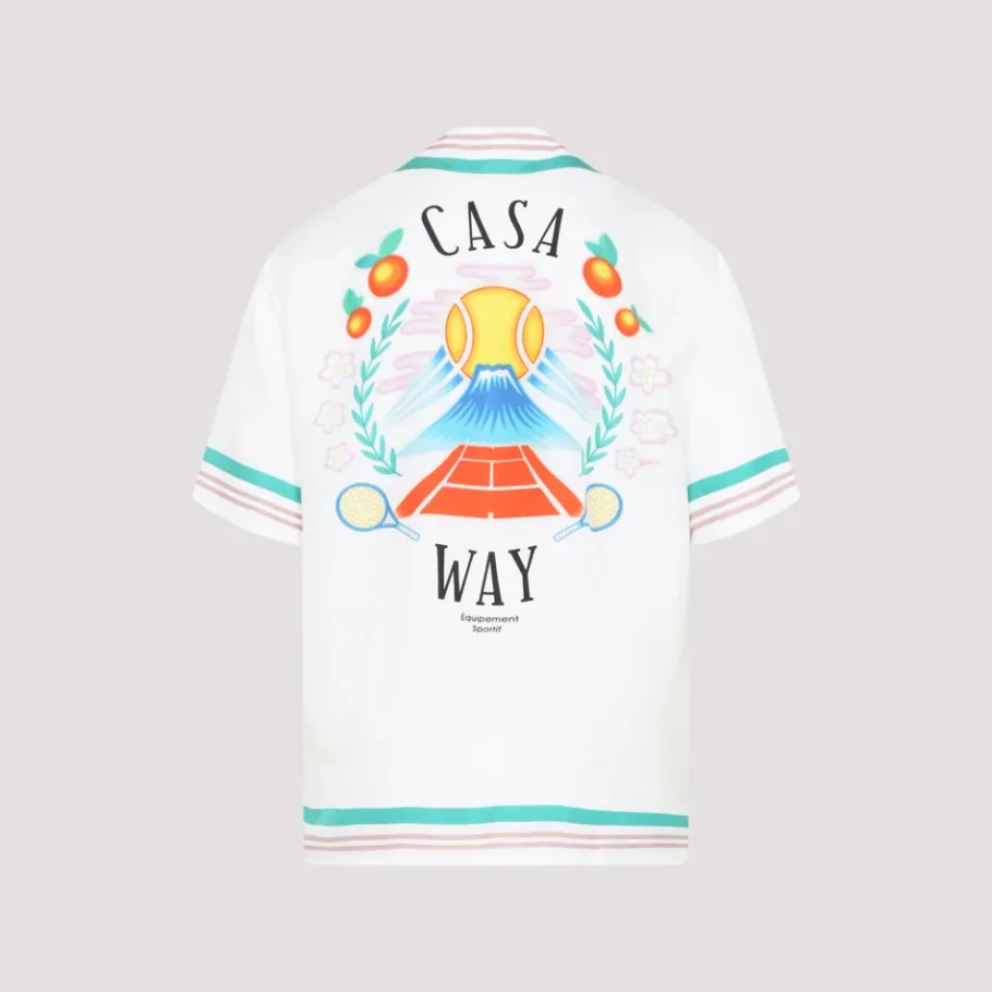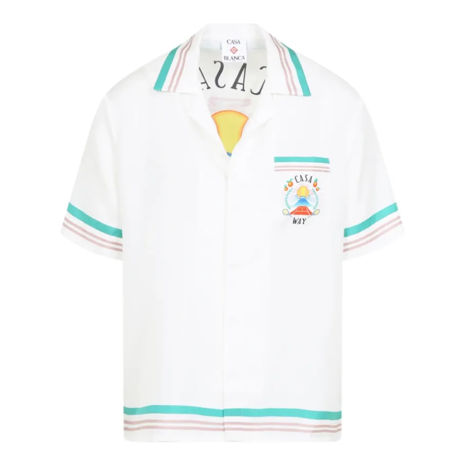 Verhoog moeiteloos je stijl met het luxueuze CASABLANCA MPF25SH00307 zijden overhemd voor heren, perfect voor verfijnde gelegenheden. Gemaakt van 100% zijde, straalt dit getailleerde overhemd elegantie uit.