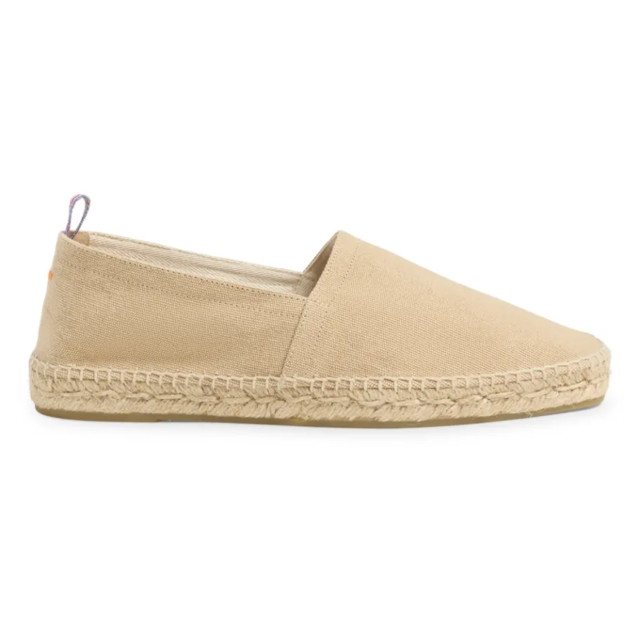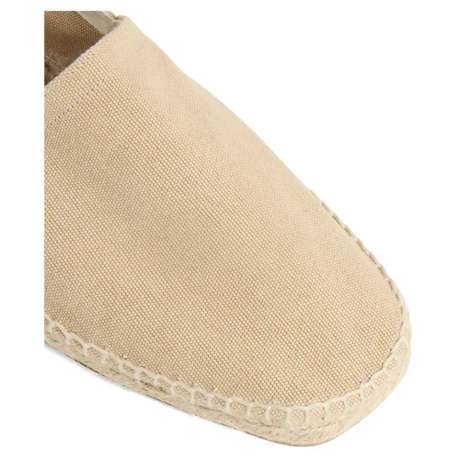 Upgrade je casual stijl met deze zand beige Castañer Pablo platte espadrilles. Met de hand vervaardigd in Spanje van gecertificeerd katoen met een gewassen afwerking, hebben deze instap espadrilles een gesloten en vierkante neus, een gevulkaniseerde rubberen zool, zichtbare stiksels en een aantreklus aan de hiel. Het schapenwollen interieur zorgt voor de hele dag comfort. Totale hoogte: 2 cm; Plateauhoogte: 2 cm.