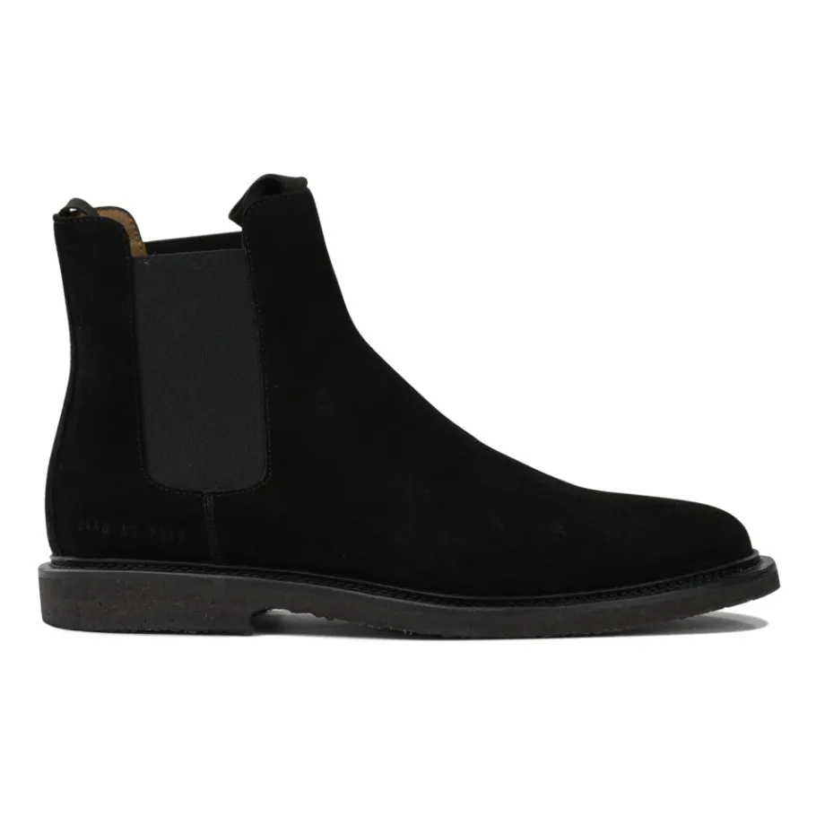 Verhoog je stijl met deze Common Projects suède Chelsea enkellaarzen. Met een instapmodel met elastische zij-inzetstukken voor een nauwsluitende pasvorm en een rubberen buitenzool voor comfort, perfect voor elke gelegenheid.