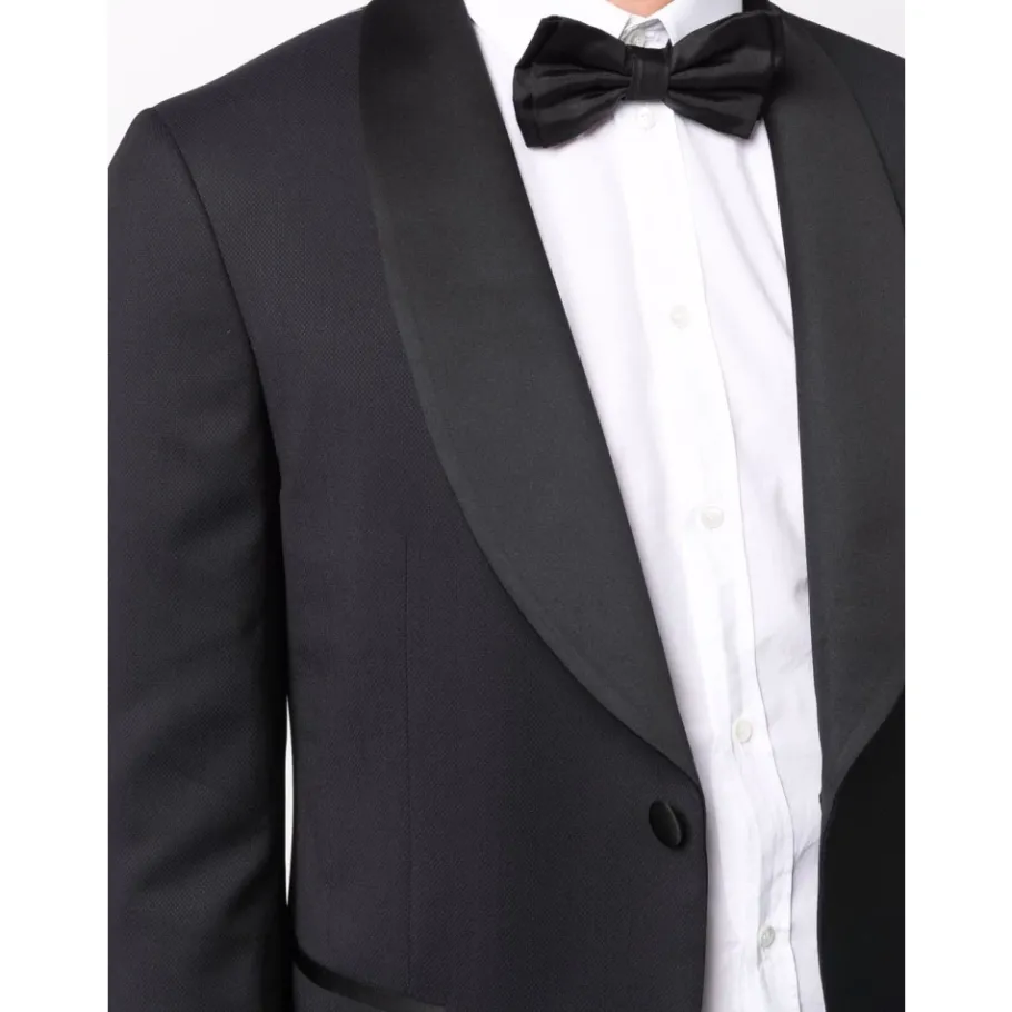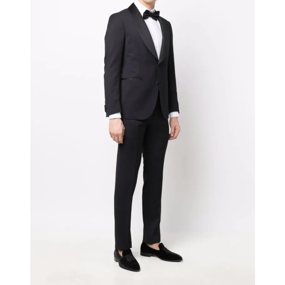 Corneliani Tweedelig Avondpak combineert klassiek maatwerk met een verfijnd shawl-revers design, gemaakt voor formele gelegenheden en een elegante uitstraling. Belangrijkste kenmerken: Zwart | Knoopsluiting aan de voorkant | Zijzakken | Tweedelige set | Shawl-revers | Getailleerd design | Lange mouwen | Middenachter split | Afmetingen & pasvorm: Getailleerde pasvorm | Ontworpen voor formele gelegenheden