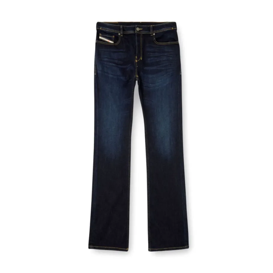 Diesel 2007 Zatiny bootcut jeans combineren een klassiek bootcut silhouet met een ultra-zachte stretch denim voor comfortabel dagelijks gebruik. Belangrijkste kenmerken: Donkerblauw | Katoen | Stretch denim | Ultra-zachte comfortabele stof | Knoopgulp | Vijf-pocket design | Riemlussen | Gewassen afwerking met subtiele slijtageplekken | Contrasterende oranje stiksels | Merklogo op de achterkant | Afmetingen & pasvorm: Bootcut pasvorm | Lage taille | Slanke pijp die wijder wordt van de kuit tot de enkel | Samenstelling & onderhoud: 95% katoen | 3% elastomultiester | 2% elastaan | Machinewas 30°C op een fijnwasprogramma; niet bleken; niet in de droogtrommel; strijken op max. 110°C; niet chemisch reinigen; plat drogen in de schaduw.