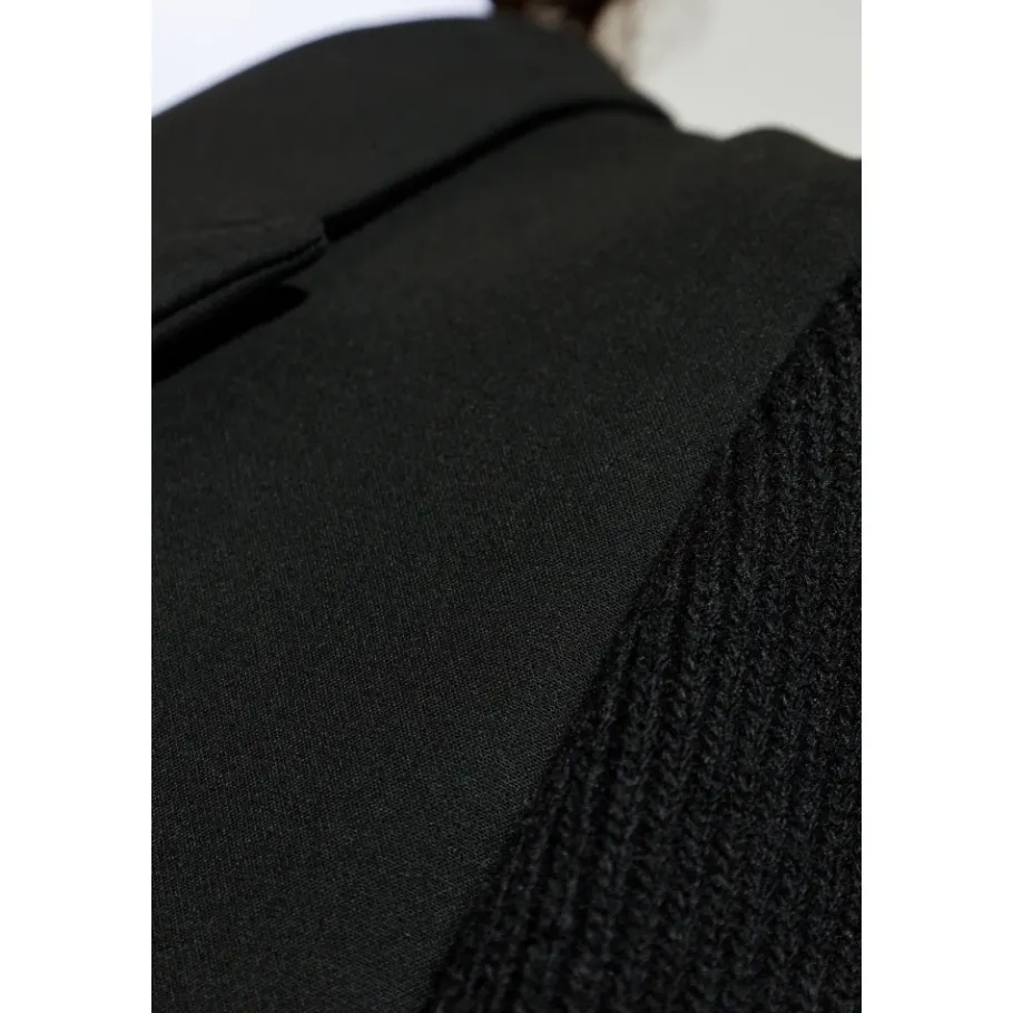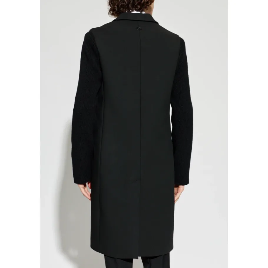 De Diesel W-Yard Coat combineert een getailleerd, recht gesneden model met contrasterende gebreide mouwen voor een verfijnd, eigentijds bovenkledingstuk. De diepzwarte afwerking en de sluiting met drie knopen maken de jas geschikt voor formele en smart-casual gelegenheden. Belangrijkste kenmerken: Zwart | Wol | Sluiting met drie knopen | Horizontale klepzakken op heuphoogte | Esthetische kraag | Rechte snit | Gebreide contrasterende mouwen | Discrete verticale achternaad | Afmetingen & pasvorm: Lengte model: 193 cm | Borst: 95 cm | Taille: 82 cm | Heupen: 93 cm | Model draagt maat: 50 | Rechte snit | Samenstelling & onderhoud: Wol | Nylon | Viscose | Polyester | Elastaan