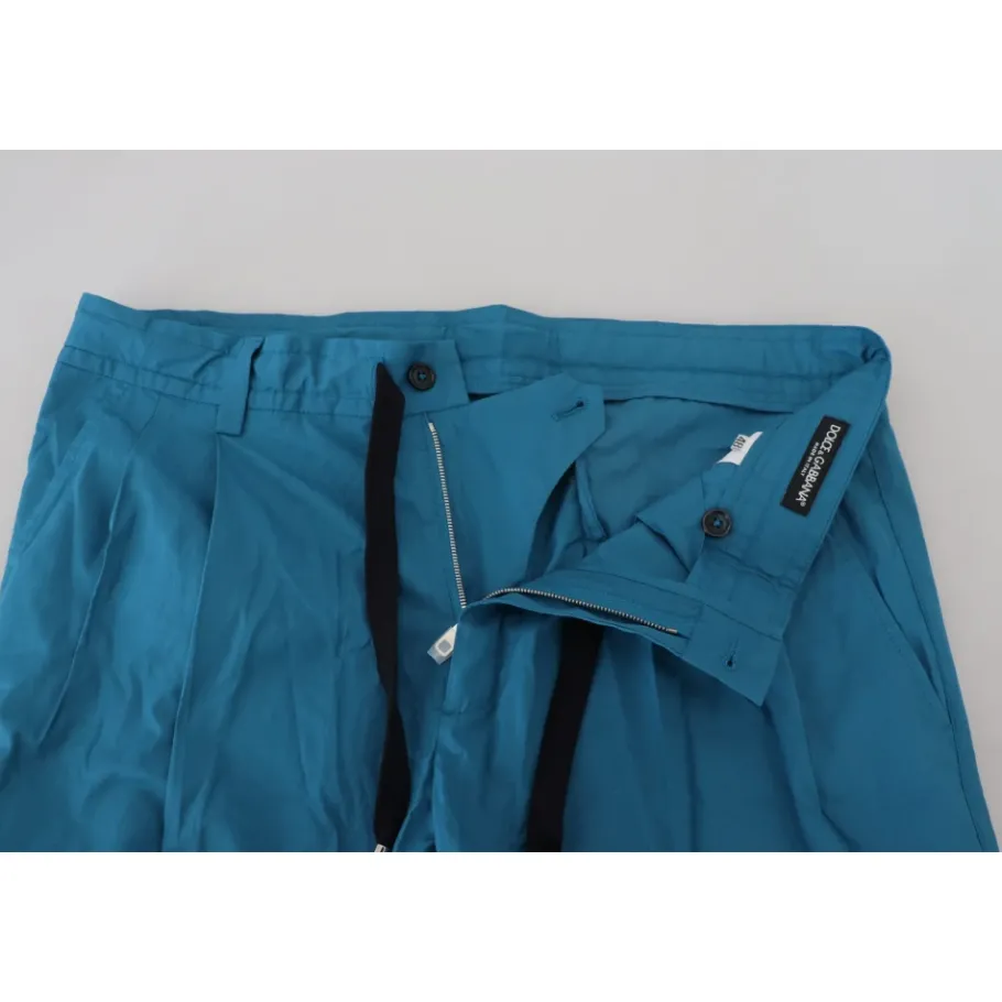 Upgrade je casual garderobe met deze absoluut prachtige Dolce & Gabbana chinos broek. Gemaakt van 100% katoen, hebben deze gloednieuwe broeken een regular fit, trekkoord- en ritssluiting, en logo details. Gemaakt in Italië, komen ze in een stijlvolle blauwe kleur en zijn afgewerkt met twee voorzakken en één achterzak. Perfect voor de moderne man die zowel stijl als comfort waardeert.