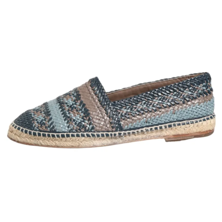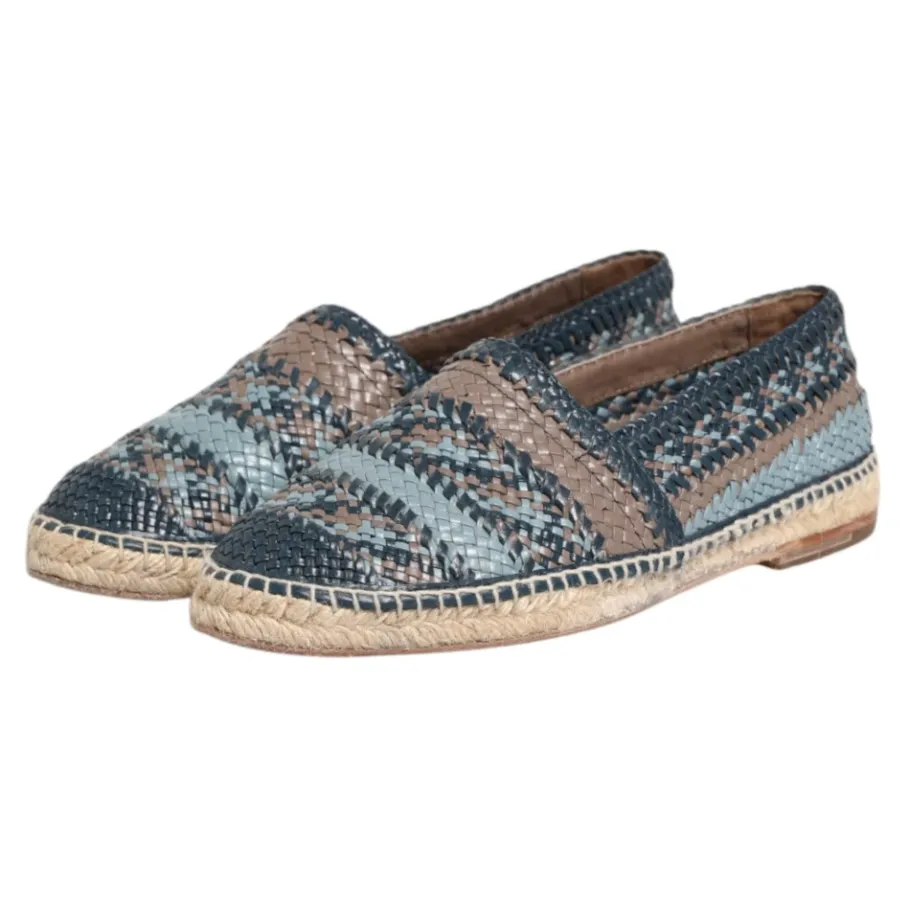 Upgrade je schoenencollectie met deze authentieke Dolce & Gabbana geweven espadrilles van buffelleer in blauw en grijs. Gemaakt in Italië met hoogwaardig buffelleer en voorzien van subtiele logodetails. Deze vooraf eigendom schoenen zijn in uitstekende staat met lichte slijtageplekken. Een must-have voor de stijlvolle man.