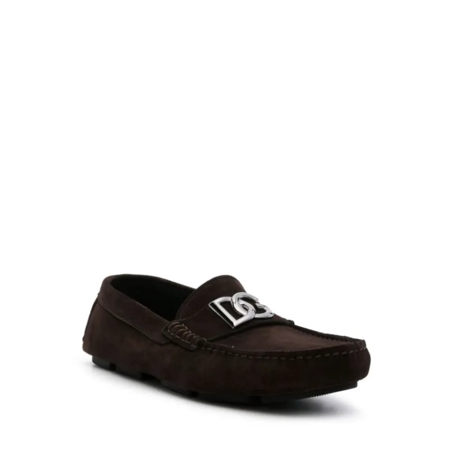 Verhoog je casual look met deze Dolce & Gabbana koffiebruine kalfssuède loafers. Met een logo plaque, slip-on stijl, vierkante neus, branded leren binnenzool en platte rubberen zool met een hak van 2,0 centimeter en een zoolhoogte van 1,5 centimeter.