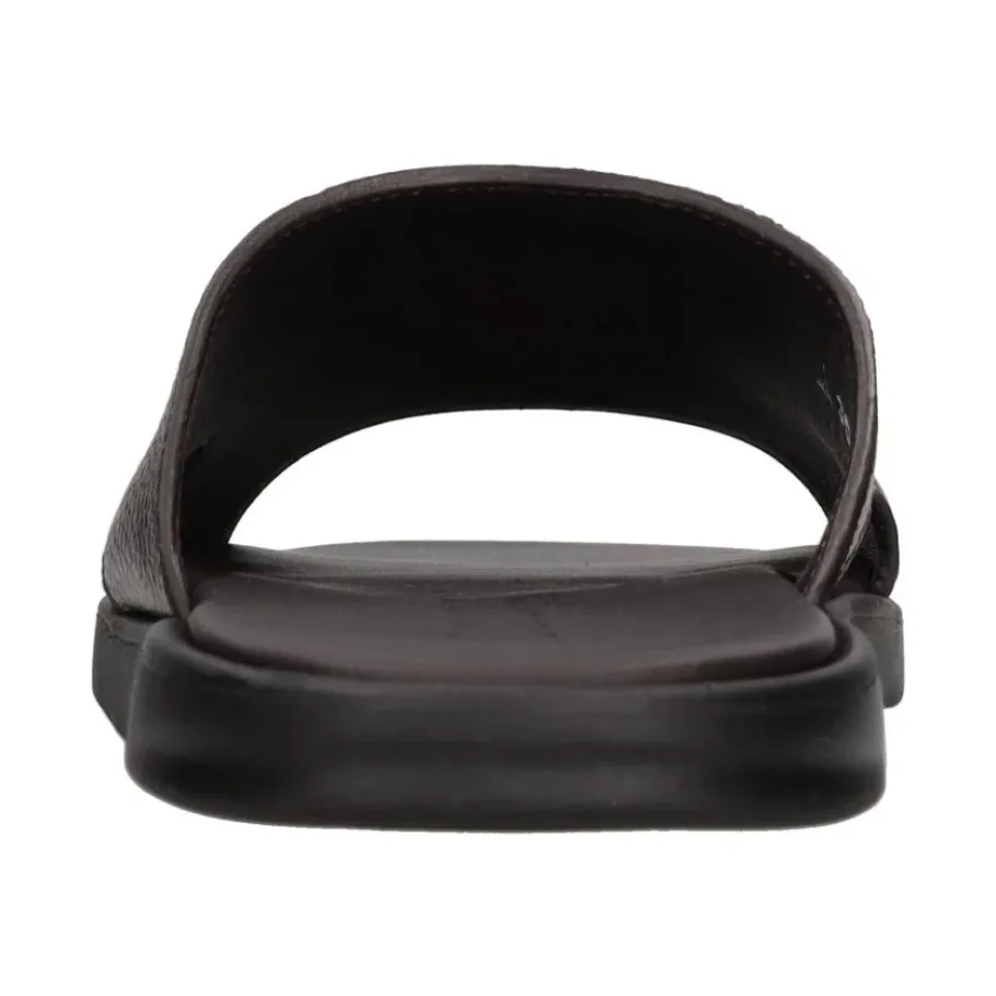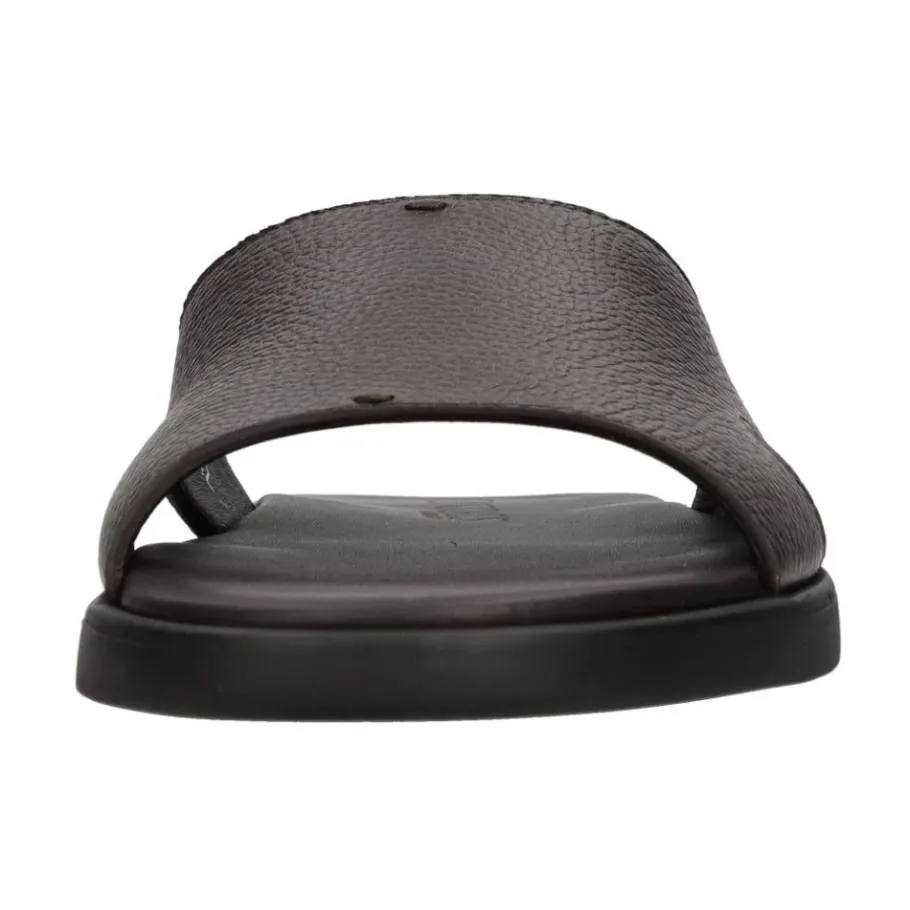 Doucal’s heren leren sliders met rubberen zool en leren binnenzool.