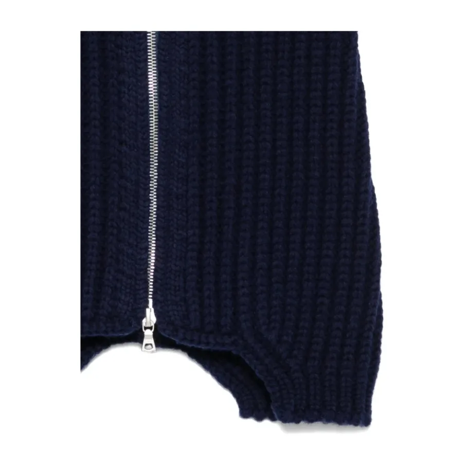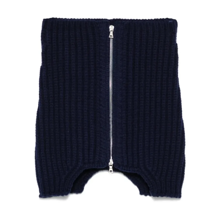 Blijf warm en stijlvol met deze Dries Van Noten wintersjaal voor mannen. Gemaakt van 100,0% wol in een donkerblauw geribbeld gebreid ontwerp, met een ritssluiting en een lengte van 37,0 centimeter.