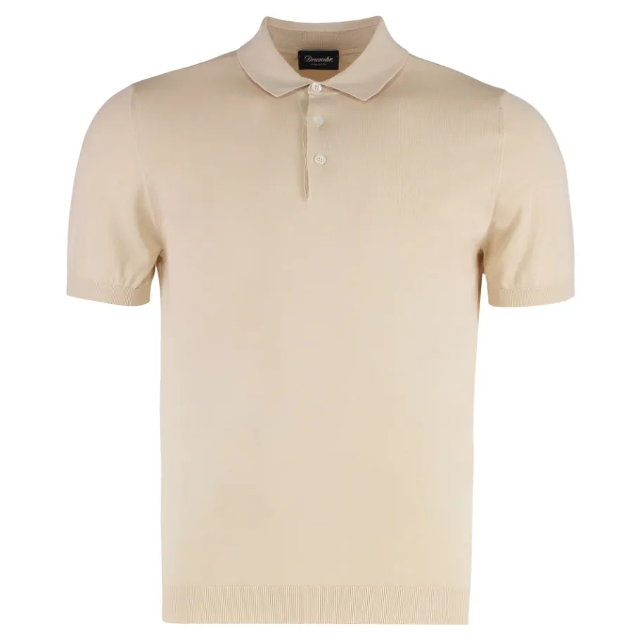 Het Drumohr gebreide katoenen poloshirt heeft een verfijnde gebreide constructie met geribbelde randen en een klassieke sluiting met drie knopen. Het is ontworpen voor veelzijdige casual en smart-casual gelegenheden. Belangrijkste kenmerken: Beige | Katoen | Machinewasbaar | Sluiting met drie knopen | Korte mouwen | Polokraag | Geribbelde gebreide randen | Rechte zoom | Samenstelling & onderhoud: 100% Katoen | Machinewas op 30°C.