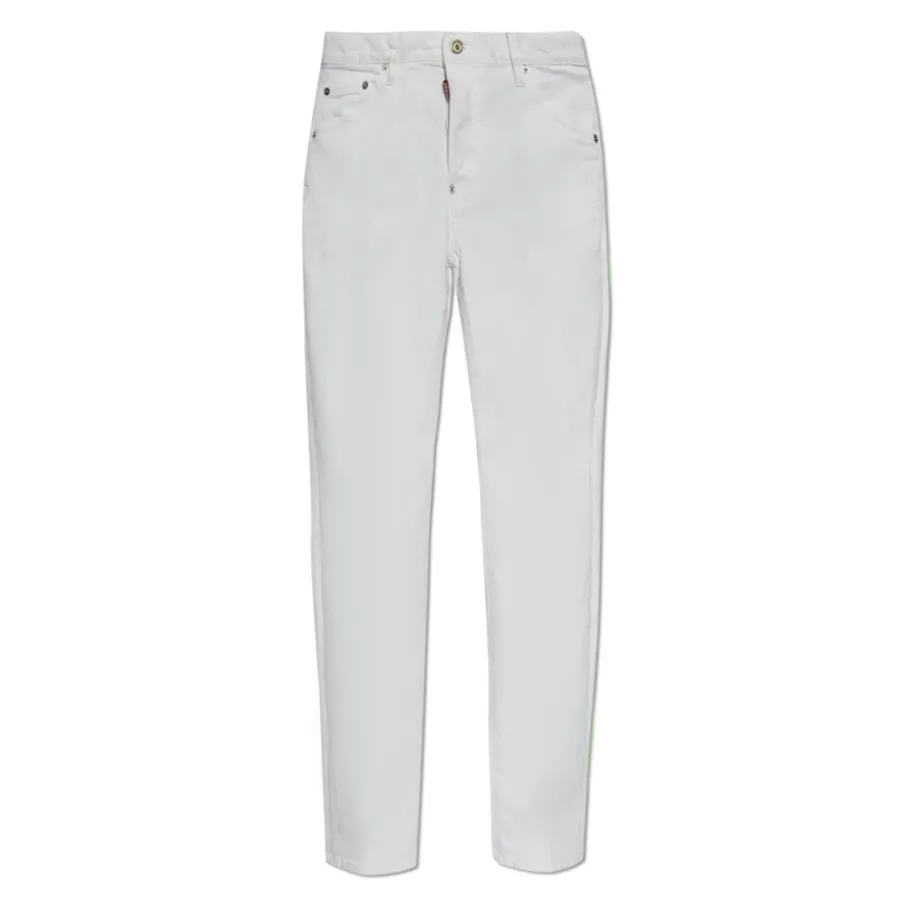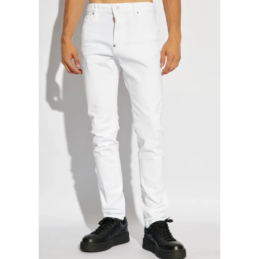 Ontdek de Jeans Cool Guy van Dsquared2, met een klassieke rechte snit, licht taps toelopende pijpen en een glad, uniform patroon. Deze jeans biedt een perfecte mix van elegantie en moderniteit, gemaakt van hoogwaardig stretchdenim voor ongeëvenaard comfort. Belangrijkste kenmerken: Wit | Stretchdenim | Knoopsluiting aan de voorkant | Vijf steekzakken | Subtiele `white bull` inscriptie op de achterzak | Afmetingen en pasvorm: Slim fit | Samenstelling en onderhoud: 98% Katoen | 2% Elastaan | Machinewas koud, droogtrommel laag