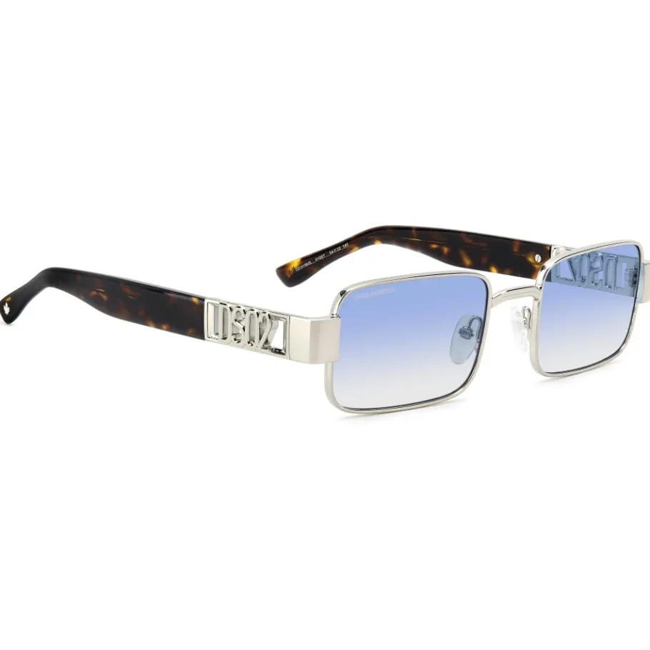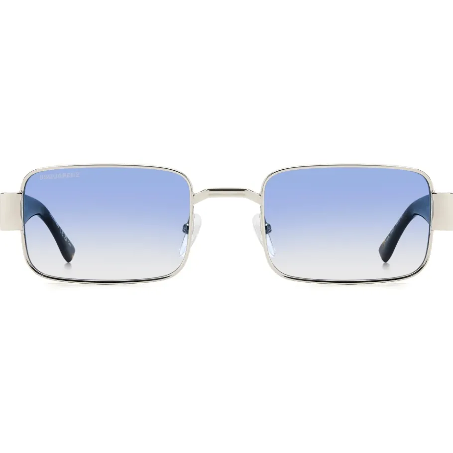 Ontdek de stijlvolle Dsquared2 herenzonnebril met rechthoekig metalen montuur, ontworpen in de pure DSQUARED2-stijl. Met het iconische DSQ2-logo op de pootjes en een subtiel maar kostbaar gravure die het DSQUARED2-logo herhaalt op de voorste profielen. Maat: 54-22-145. Rechthoekige vorm in glanzend zilvermetaal.