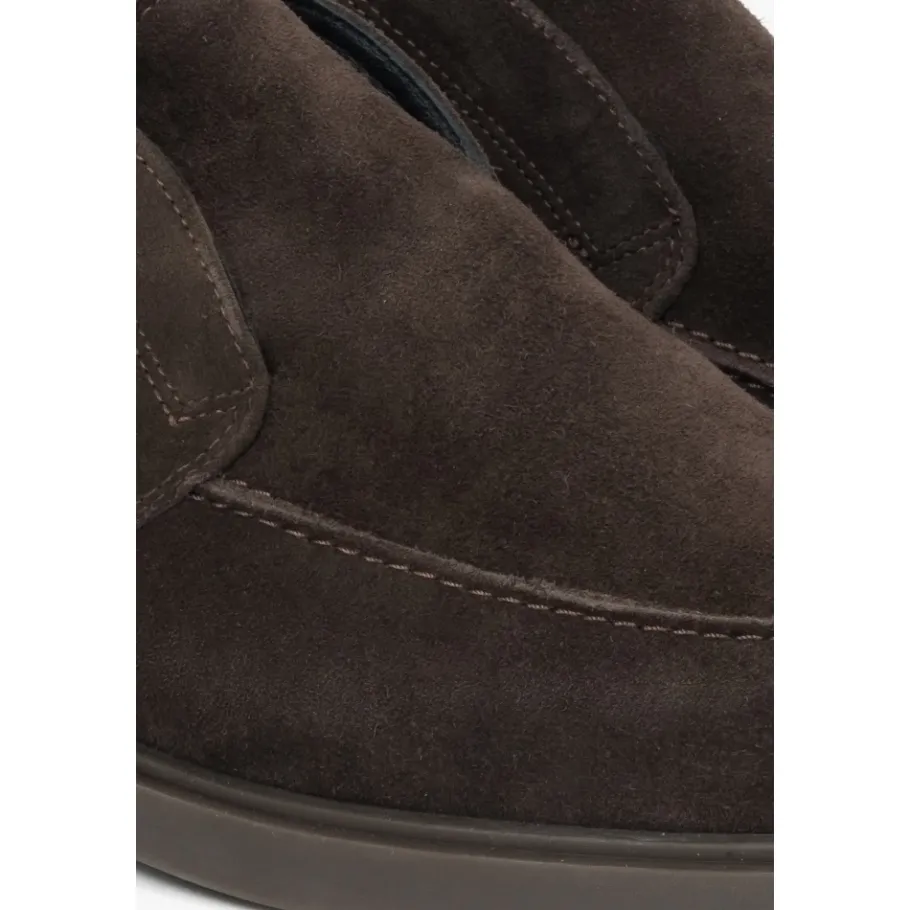 Ervaar luxe met deze donkerbruine loafers, vervaardigd van premium Italiaans velours, ontworpen voor zowel stijl als comfort. Belangrijkste kenmerken: Bruin | Italiaans Velours | Afmetingen en pasvorm: Regular fit | Samenstelling en onderhoud: Afnemen met een vochtige doek.