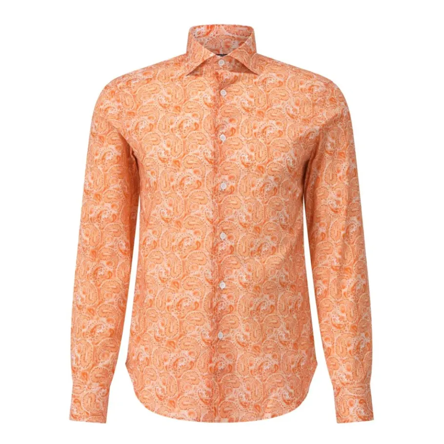 Ontdek de tijdloze elegantie van het Licht Katoenen Overhemd van Fedeli. Dit in Italië vervaardigde item biedt ongeëvenaard comfort en veelzijdigheid, perfect voor zowel casual als elegante ensembles. Belangrijkste kenmerken: Oranje | Lichtgewicht Katoen | Afmetingen en pasvorm: Perfecte pasvorm | Samenstelling en onderhoud: Machinewas koud, droogtrommel laag.