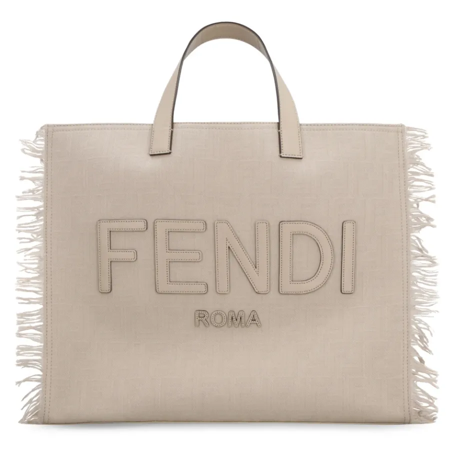 De Fendi Jacquard Fabric Tote is voorzien van het FF all-over jacquardmotief van het merk en franjes aan de zijkanten voor een onderscheidende tas voor dagelijks gebruik. Het ruime open vak, het interne ritsvak en de afneembare riem maken hem veelzijdig om in de hand of over de schouder te dragen. Belangrijkste kenmerken: Beige | Zand | Canvas en kalfsleer | Één open vak | Intern ritsvak | Twee leren handvatten | Afneembare stoffen riem | FF all-over motief | Decoratieve franjes aan de zijkanten | Zilverkleurige metalen hardware | Stoffen voering | Afmetingen en pasvorm: Breedte: 40 cm | Hoogte: 34 cm | Diepte: 20 cm | Riem: 100 cm | Samenstelling en onderhoud: 100% Katoen | 100% Kalf
