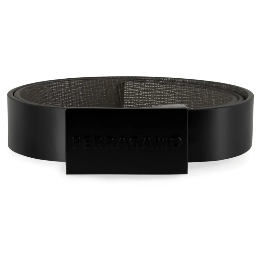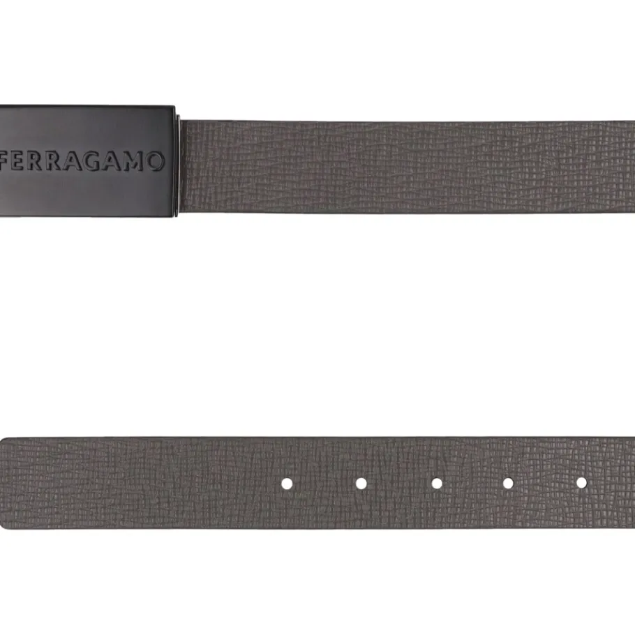 De Ferragamo omkeerbare leren riem combineert klassiek kalfsleer met een metalen gesp aan de voorkant voor een veelzijdig accessoire dat bij elke outfit past en twee looks in één biedt. Belangrijkste kenmerken: Zwart | Kalfsleer | Omkeerbaar | Gespsluiting | Metalen gesp aan de voorkant | Rechthoekige gesp | Afmetingen & pasvorm: Gespmaat: 6,5 x 3,5 cm | Riemhoogte: 3 cm | Samenstelling & verzorging: 100% kalf