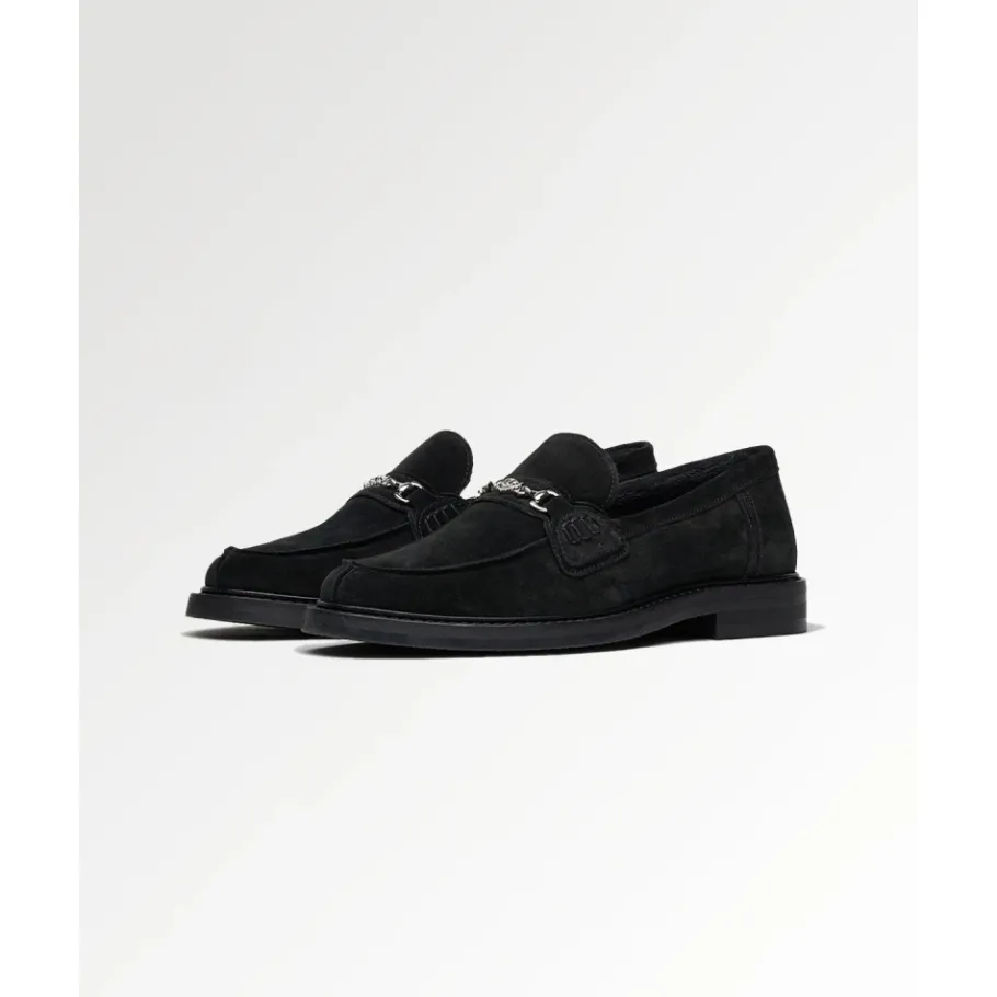 Ontdek de Suède Loafers van Filling Pieces, een luxueuze schoenkeuze met een custom zilveren handshake bridge en een soepel suède leren bovenwerk, perfect om elke outfit te verfraaien. Belangrijkste kenmerken: Zwart | Suède Leer | Custom zilveren handshake bridge |