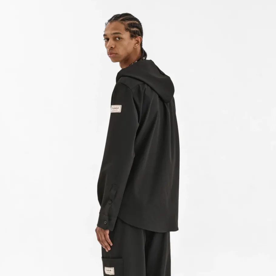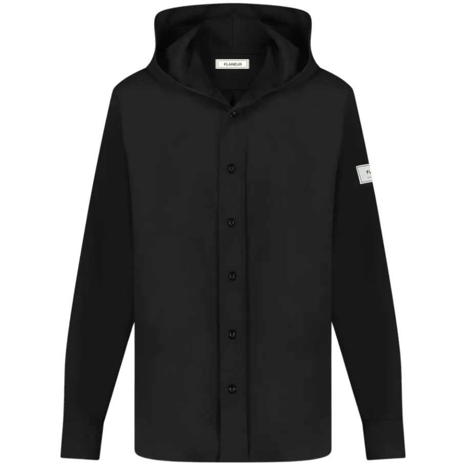 Upgrade je casual stijl met deze zwarte shirt van FLÂNEUR. Voorzien van een klassiek Flâneur Atelier embleem en aangehechte capuchon, is deze shirt perfect voor de moderne man. Gemaakt van een mix van polyester, viscose en elastan, biedt het zowel stijl als comfort. Verkrijgbaar in maat L, is deze shirt een veelzijdige toevoeging aan je garderobe.