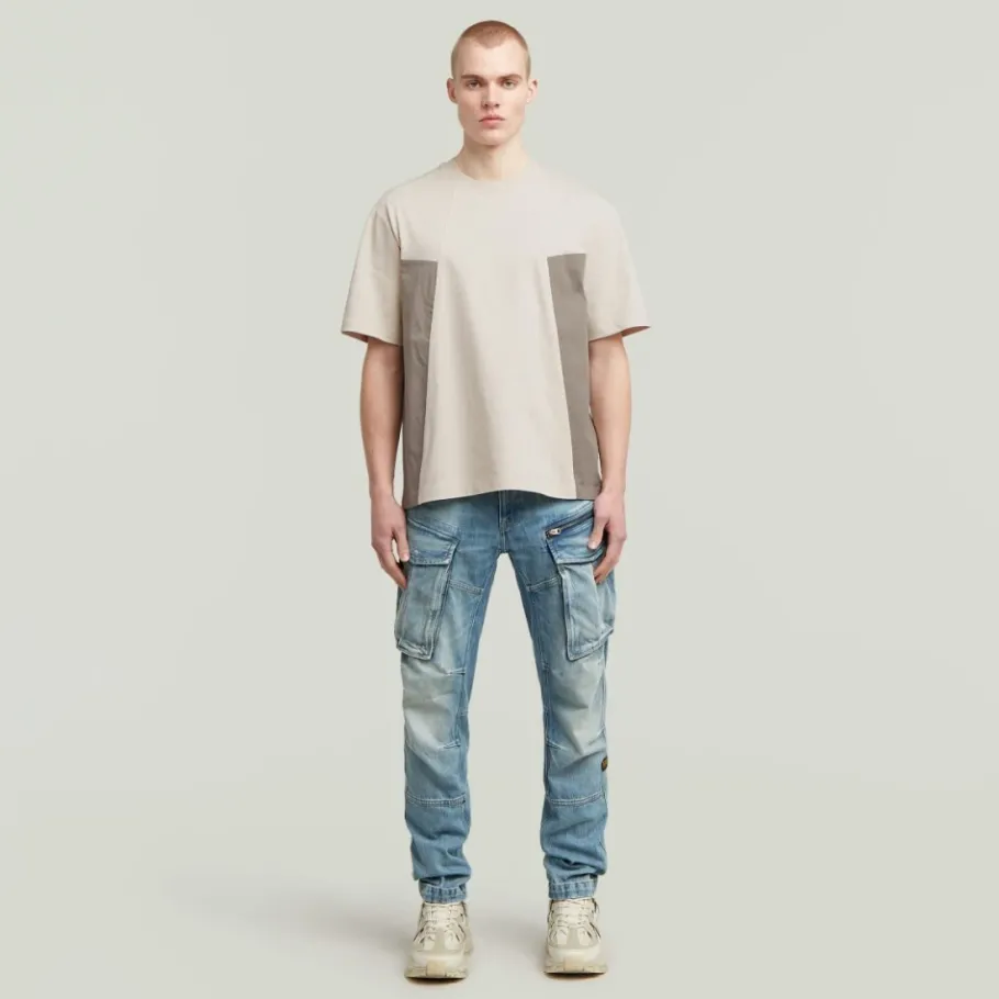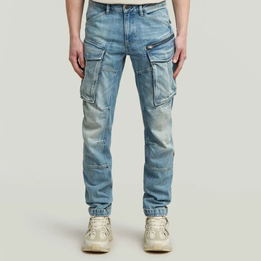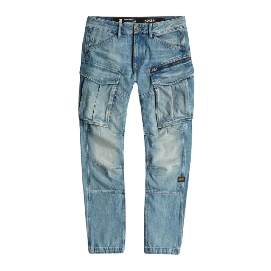 De G-Star Rovic Zip 3D Regular Tapered Jeans combineren anatomisch ontwerp met functionele cargostijl, wat resulteert in een gestructureerd silhouet en een verstelbare enkelpasvorm. Ideaal voor dagelijks gebruik waarbij praktische opbergruimte en een gedefinieerde, taps toelopende look gewenst zijn. Belangrijkste kenmerken: Vintage cumulus blue | Katoen | Stug denim | 369 gram gewicht | 3×1 rechtse keperbinding | Rits- en knoopsluiting | Cargozakken met rits | Achterzakken | Verstelbare beenzoom met geïntegreerd band | Anatomisch ontwerp met strategische coupenaden en naden | Cargozakdetails | G-Star label aan de achterkant | Afmetingen & pasvorm: Taps toelopende pasvorm | Lage taille | Lange lengte | Samenstelling & onderhoud: 100% Katoen | Machinewas 30°C normale was. Niet bleken. Niet in de droogtrommel. Strijken op lage temperatuur. Niet chemisch reinigen. Hangend drogen in de schaduw.