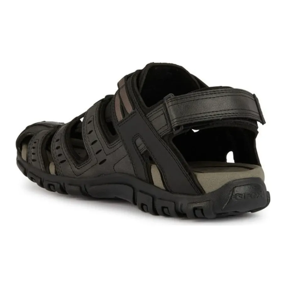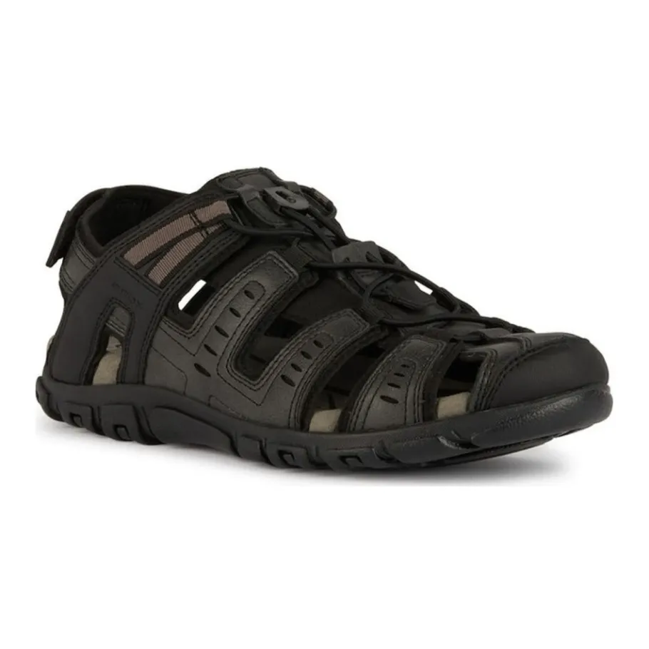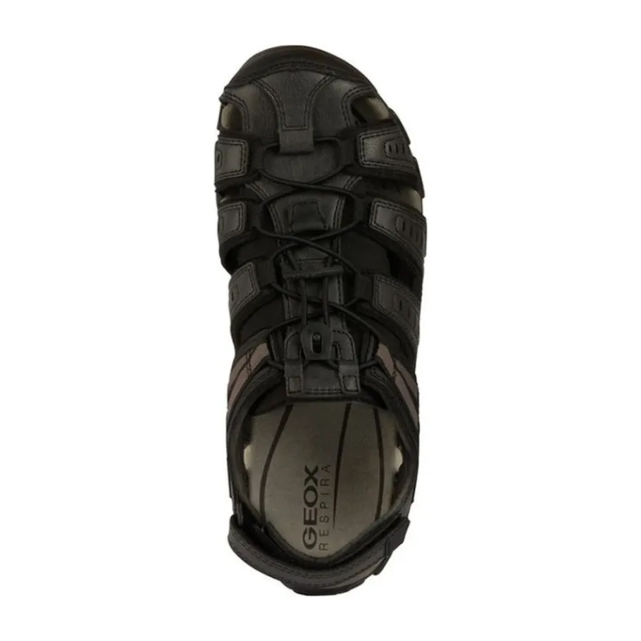 Ontdek deze stijlvolle zwarte platte sandalen voor mannen van Geox. Gemaakt met 100% polyurethaan bovenkant, 100% polyester voering en 100% rubberen buitenzool. Perfect voor volwassen mannen, deze sandalen zijn zowel comfortabel als modieus. Productcode: U4524C 000ME C9999. Fabrikant: Geox S.p.A, Italië. Koop nu op geox.com.