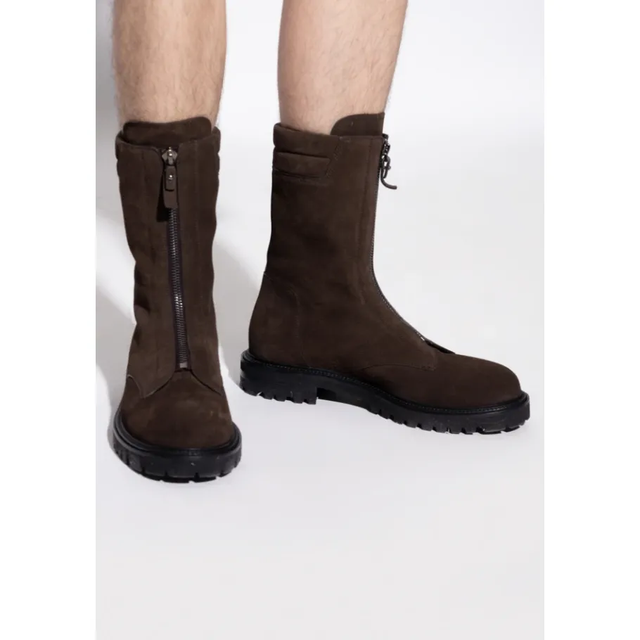 Giorgio Armani Suède Enkellaarsjes combineren minimalistisch Italiaans design met een hoge schacht en een metalen ritssluiting aan de voorkant voor een verfijnde, veelzijdige laars die geschikt is voor een verzorgde, alledaagse look. Belangrijkste kenmerken: Bruin | Suède | Machinaal geprofileerde rubberen zool voor verbeterde grip en stabiliteit | Metalen ritssluiting aan de voorkant | Met leer gevoerde binnenkant voor comfort | Hoge schacht die boven de enkel reikt | Zacht afgeronde neus | Minimalistische constructie met een strak oppervlak en geen decoratieve stiksels | Opvallende metalen ritssluiting aan de voorkant | Afmetingen en pasvorm: Zoolhoogte op het hoogste punt: 4 cm | Samenstelling en onderhoud: Bovenkant: Suède | Voering: Leer | Zool: Rubber